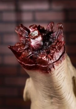 This Hanging Skeleton Groom 16″ Halloween Decoration is dressed to kill! The plastic skeleton wears a maroon-lined black jacket that’s open at the front to reveal the ribcage, a matching pair of black pants, and a black top hat with a silver band and a maroon rosette. A hanging loop attached to the top of the decoration allows it to be suspended as desired.