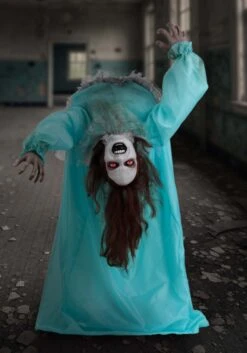 There’s something deeply wrong with the way she moves, and she’s getting closer. Spider Walk Sadie the Broken Lady is nightmare fuel in a blue dress. Bent backward at the waist, arms splayed, hair dangling, and eyes glowing red, she brings a new level of creep to your haunted setup. Her head twitches from side to side while high-pitched laughter spills from her twisted grin. This is what happens when the haunting never stops.