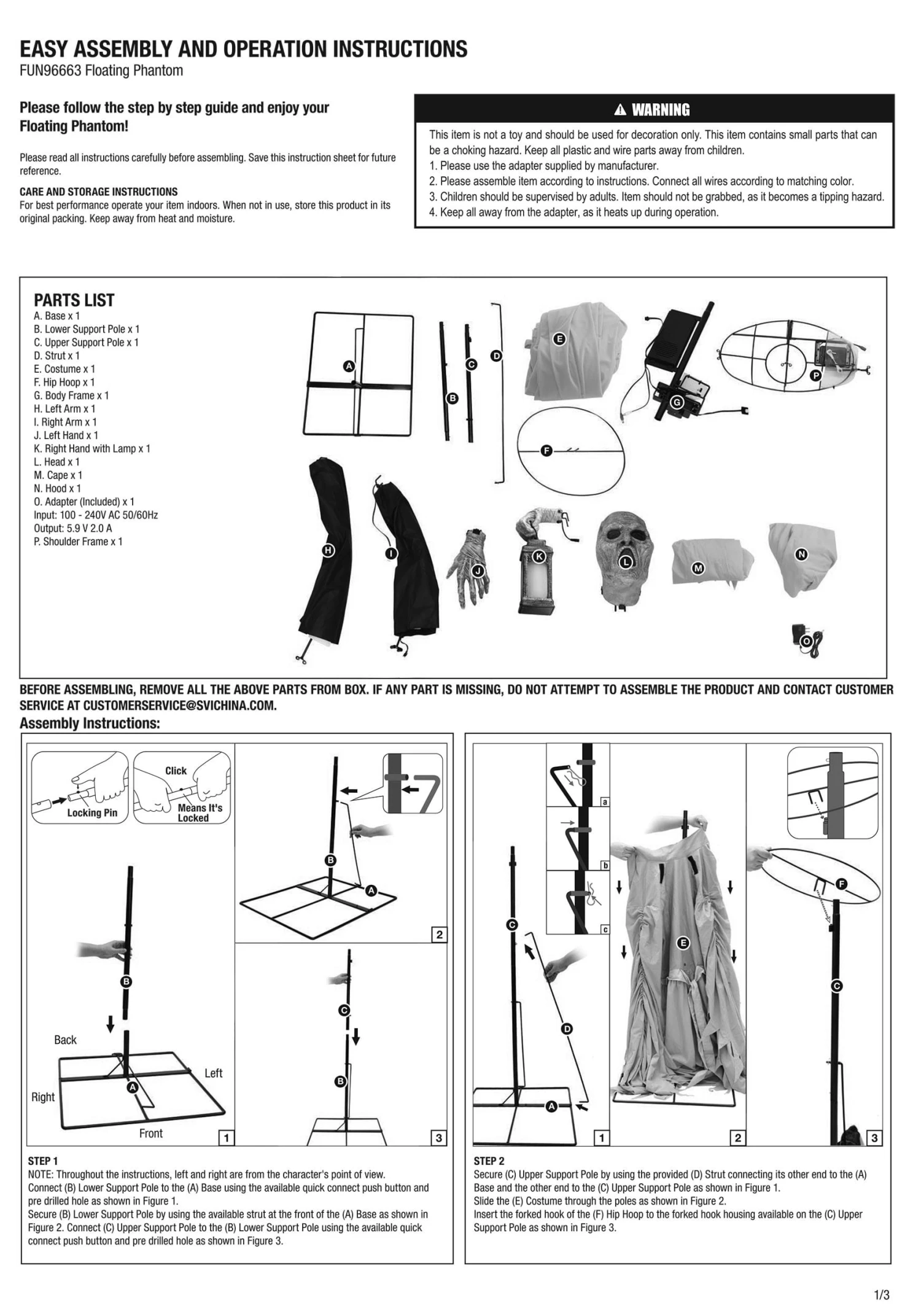 - Metal stand, plastic, polyester fabric clothing