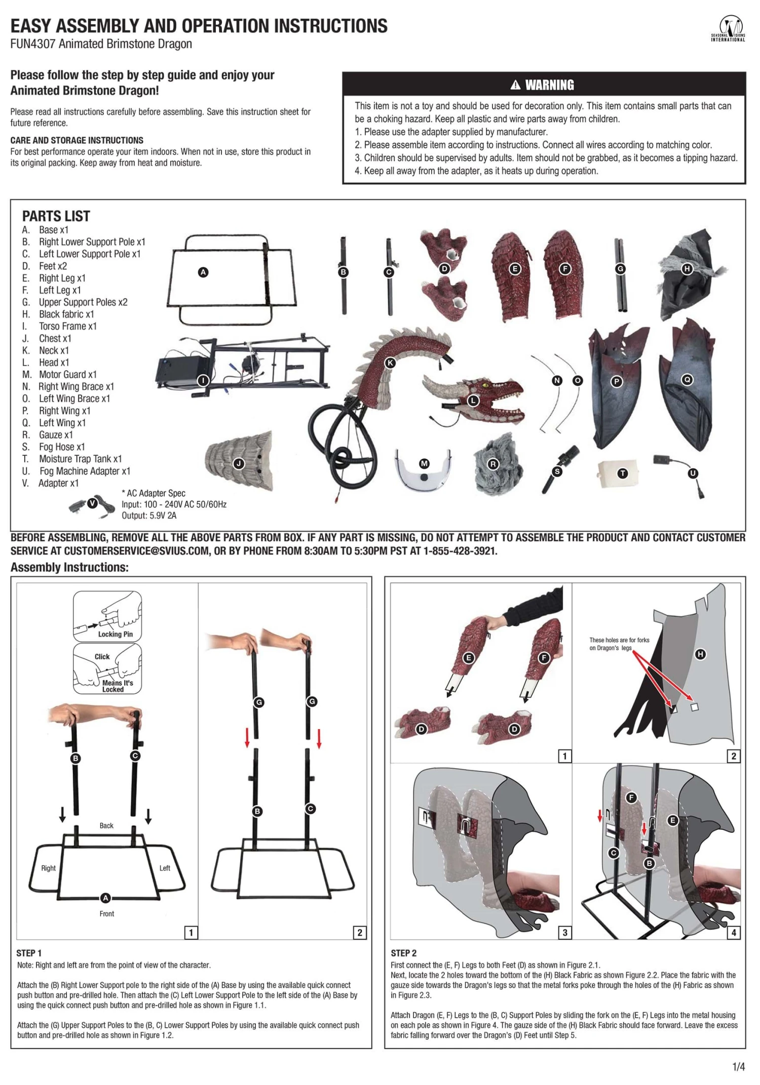 - Can be connected to a fog machine (sold separately) to give the illusion that the dragon is breathing smoke
