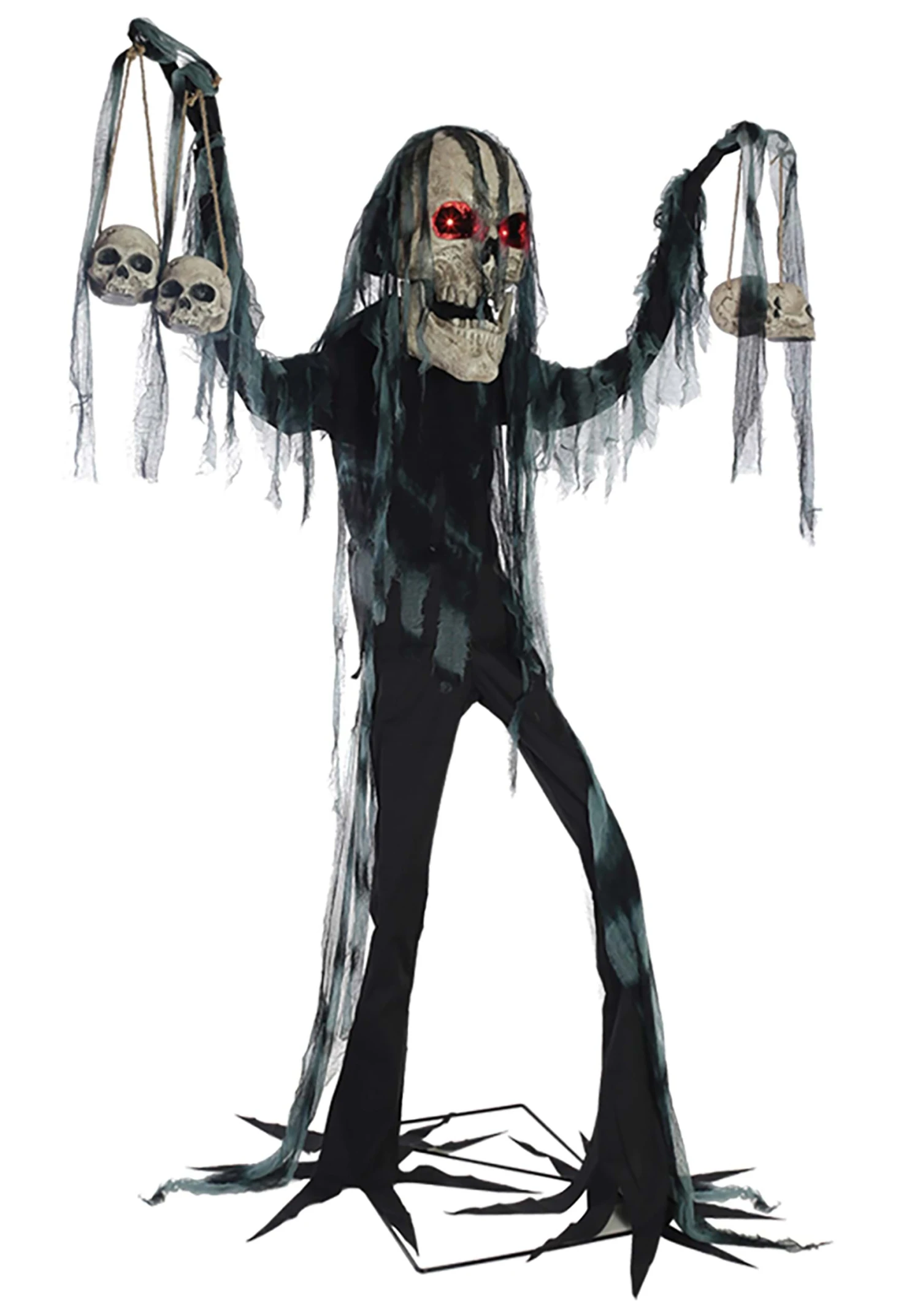 - Animated prop features a giant oversized head skull w/ hinged jaw and red eyes