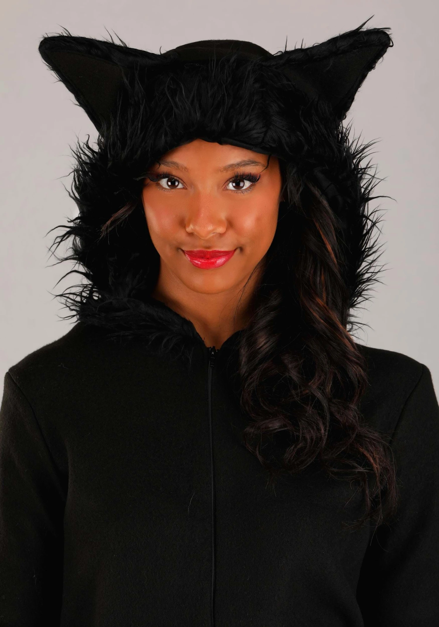 - Faux fur edging and ears on hood