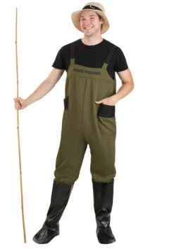 The costume also comes with boot covers styled just like classic rubber fishing boots, slipping comfortably over most shoes. Top off your look with the included fisherman’s hat, complete with a silver fishing hook detail (safely fake, of course—no tetanus shots necessary). And just like that, you’re ready to reel in some serious fun.