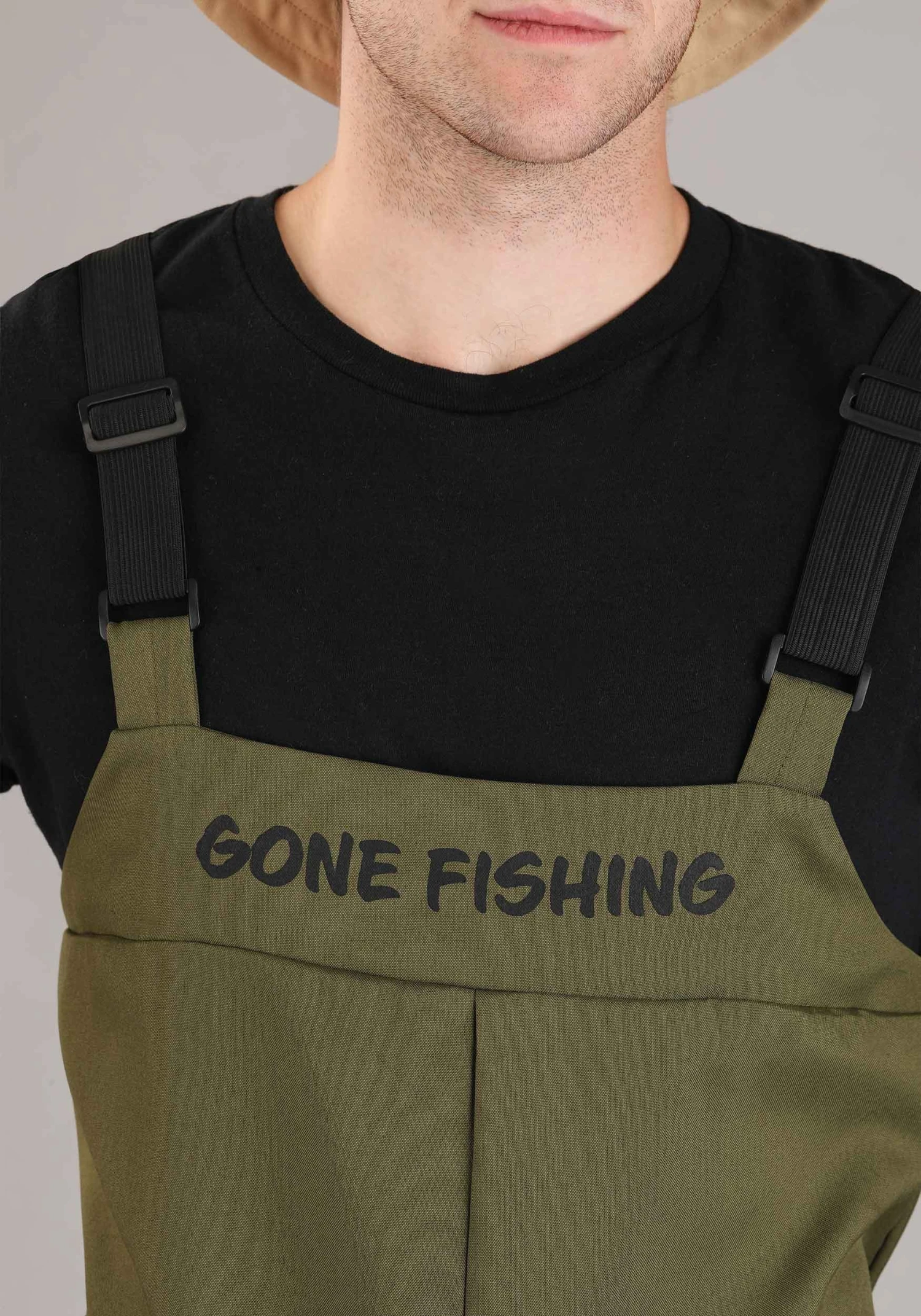 Made entirely from easy-care polyester (no waterproofing here, folks—this is strictly party fishing), this costume includes a pair of comfy olive-green coveralls printed with the phrase “Gone Fishing.” Featuring adjustable shoulder straps and convenient thigh pockets, it’s perfect for stashing your party snacks or emergency fishing line.