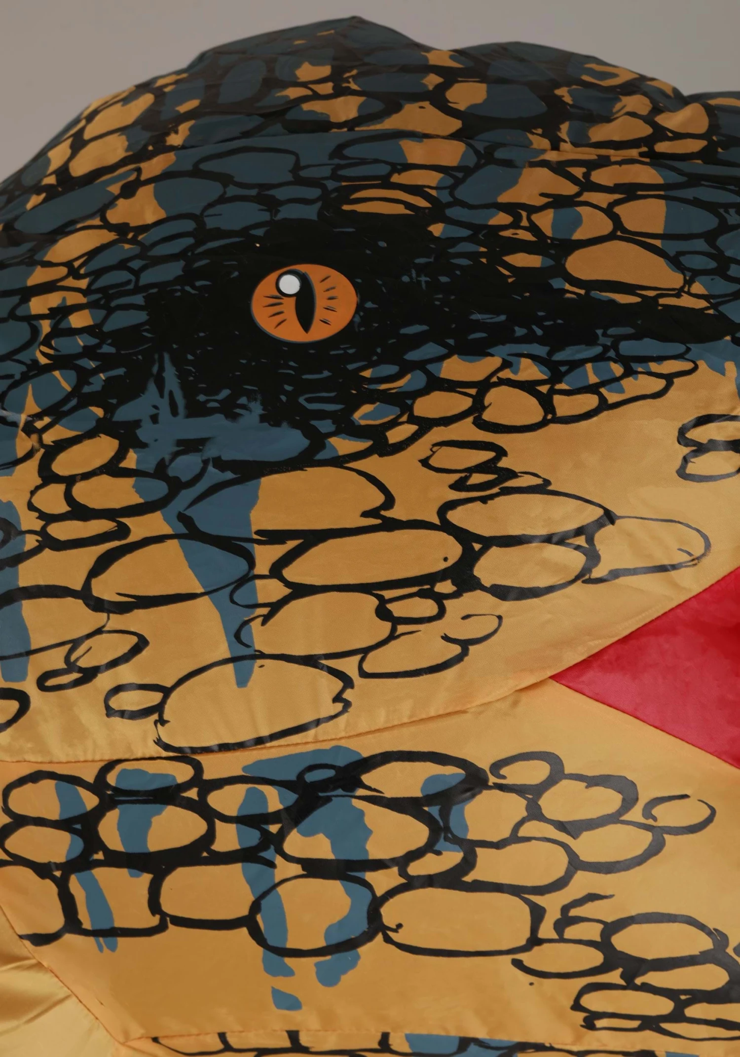 - Head is fully enclosed; tinted view port in character neck for limited vision