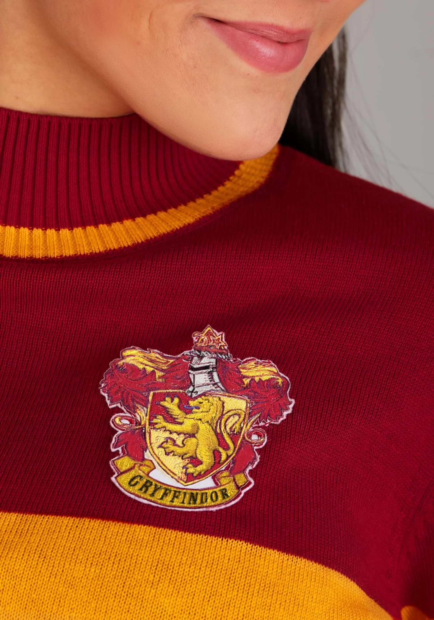 This officially licensed sweater is made exclusively in our design studio, and it features color block stripes in Gryffindor’s house colors — crimson and gold — a mock turtleneck, and the Gryffindor crest on the chest.