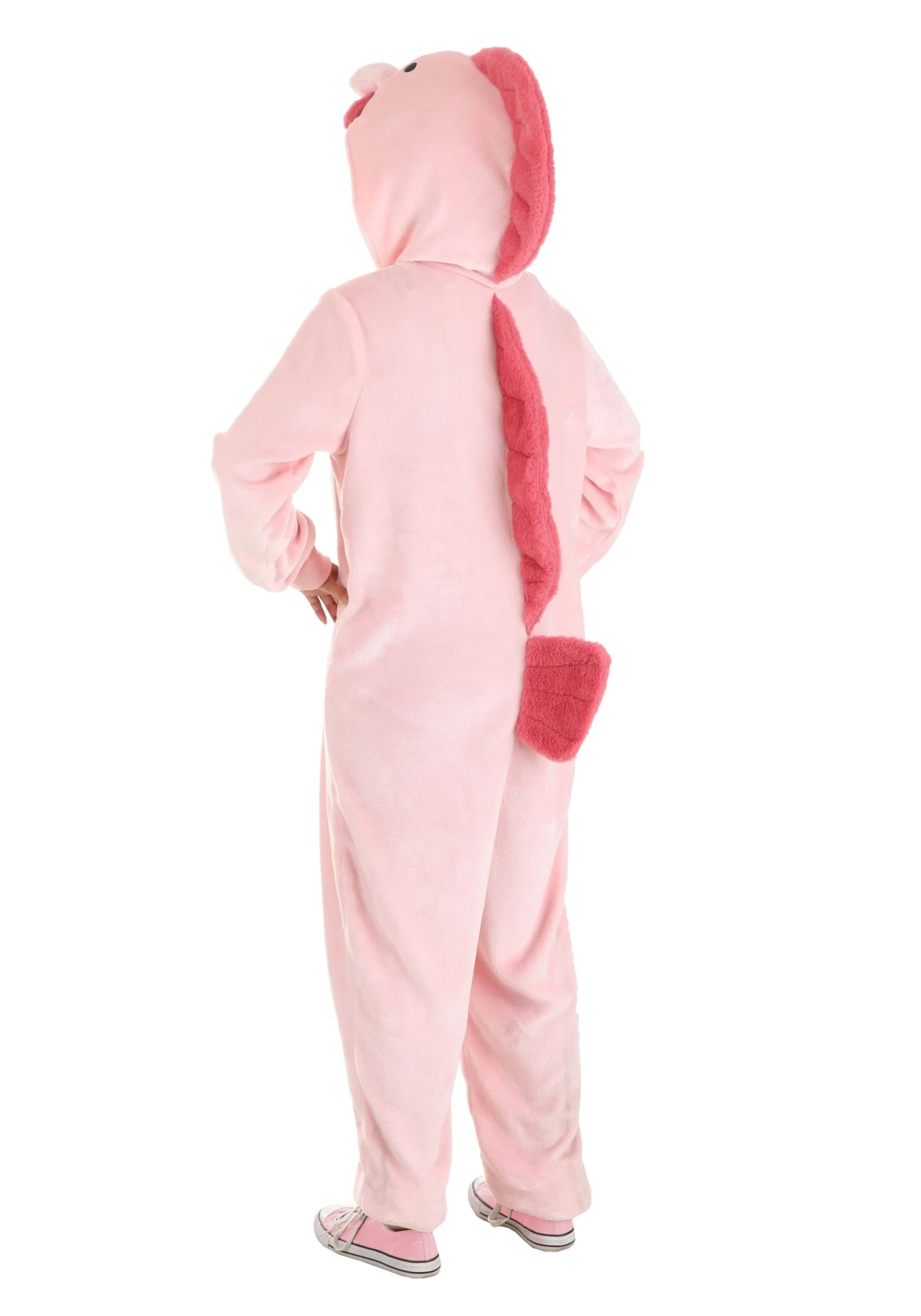 - Stuffed faux fur crest on back of hood, dorsal & tail fins on back of suit