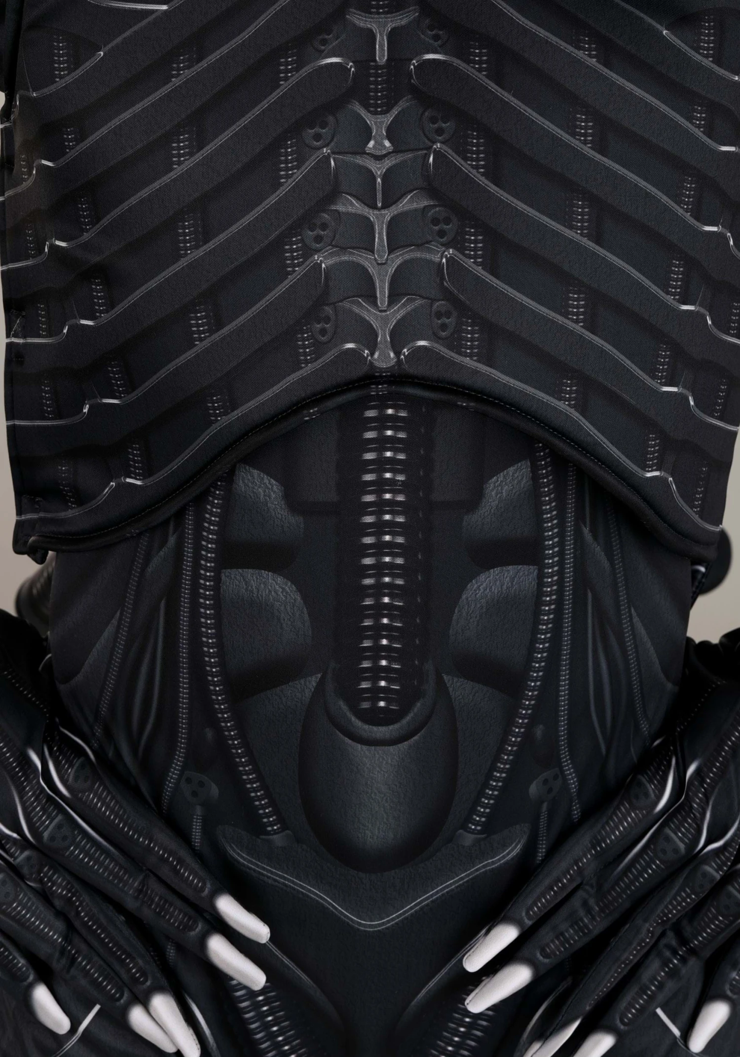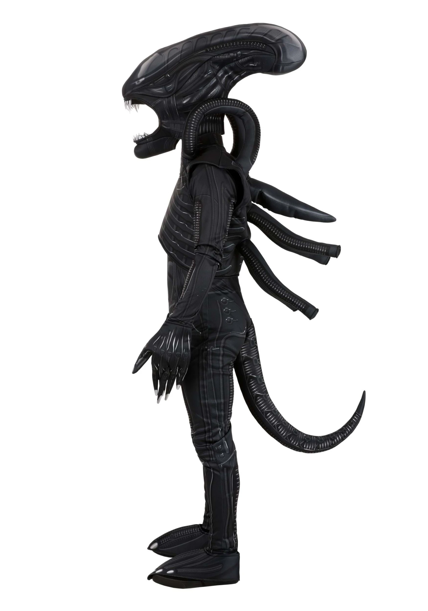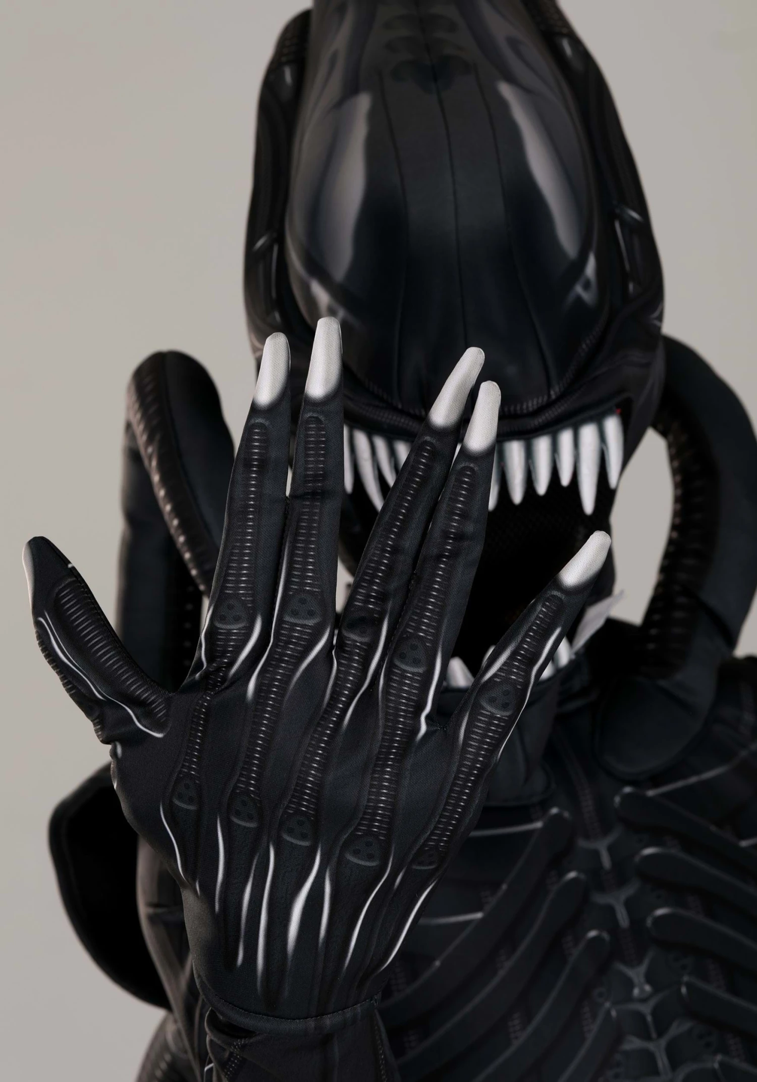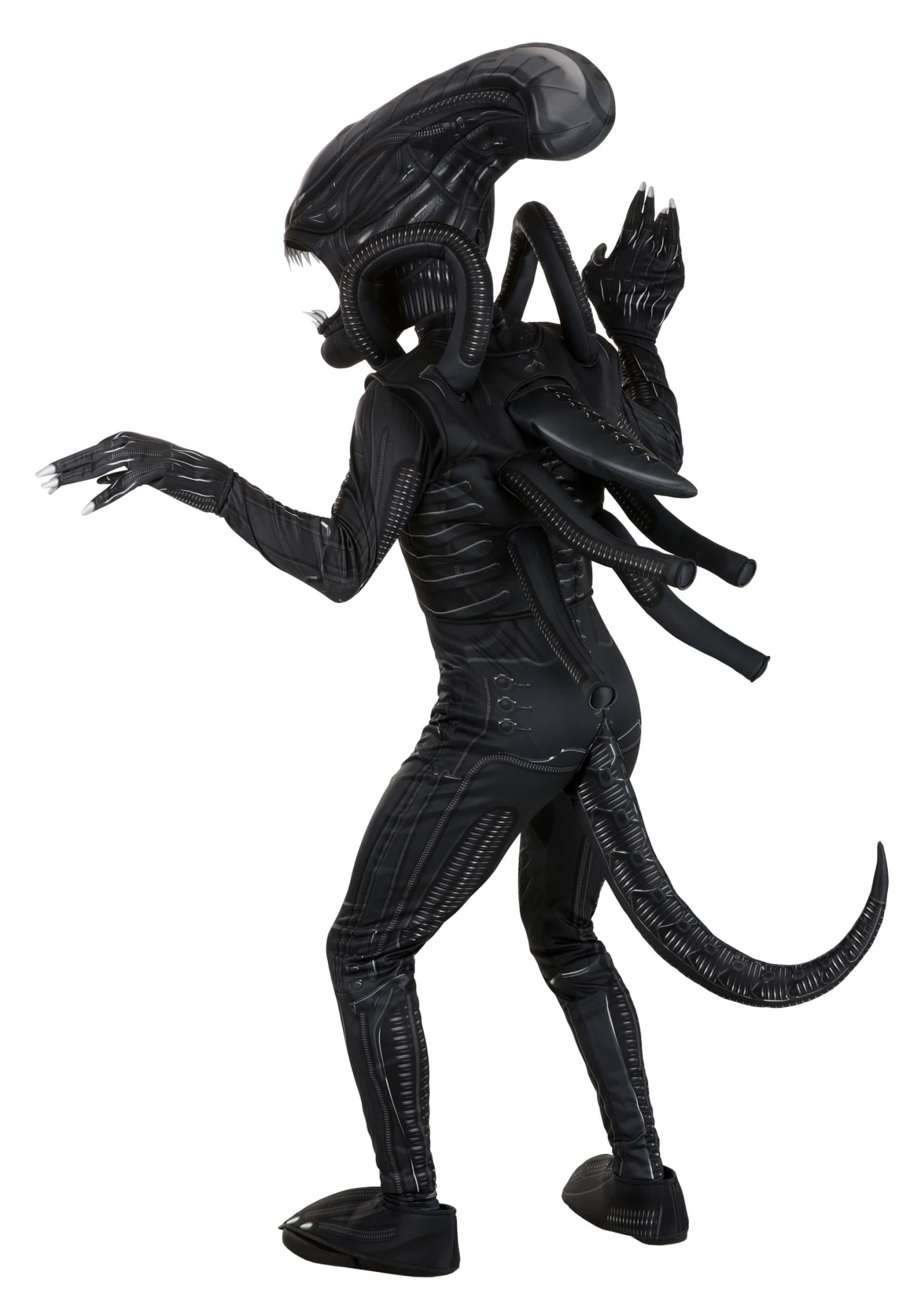 Transform into the ultimate alien legend with this officially licensed, exclusive Alien Premium Xenomorph Costume for Adults! The unisex jumpsuit zips up the back and is made of breathable jersey knit fabric. A stuffed tail is sewn to the jumpsuit’s seat. The outfit is printed all over with graphics that resemble a xenomorph’s outer markings. Foam-backed gloves with elongated “claws” and matching foam-backed shoe covers conceal your human hands and feet. The foam-backed hood features a view port through the character’s fang-lined mouth so that you can see where you’re going.