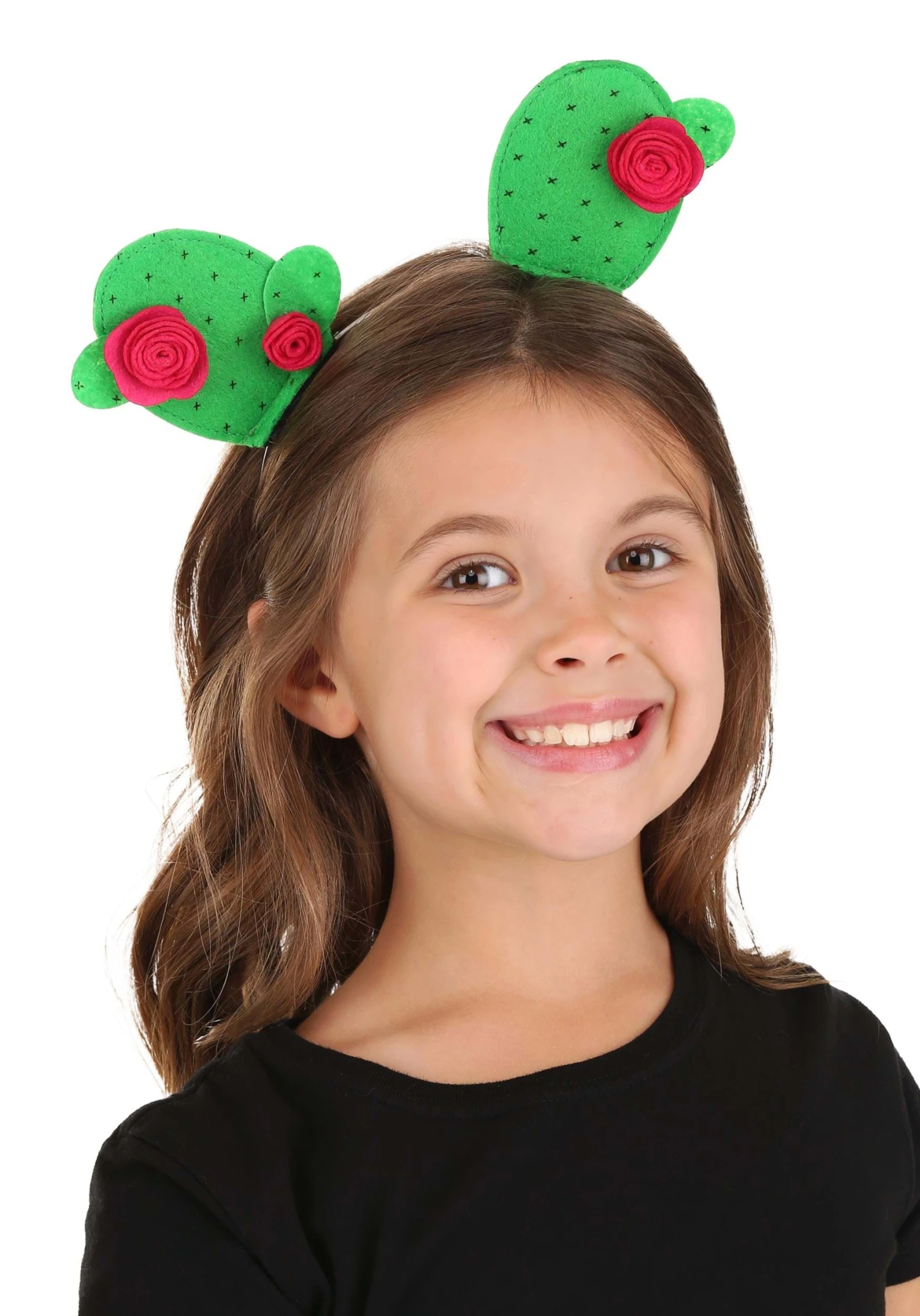 - 2 felt cacti with blossoms are attached to narrow metal headband