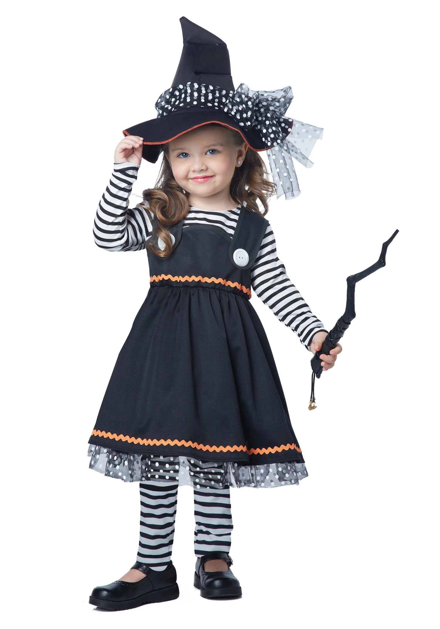 Ok, so it has been decided, you don’t want her to be just any old witch… you want her to be a crafty witch! Good choice! She can practice casting her spells, mixing up concoctions in her cauldron or just get ready to fill up her treat bucket with lots of goodies. Just throw on her classic pointed hat, suit her up and jump on that broom stick for a magical night of good old fashioned fun with this crafty little witch costume!