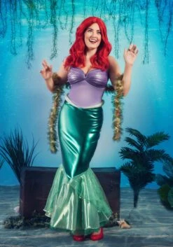 Now, we’ve tried working on gills to give to people like you, unfortunately, that’s totally not our wheelhouse. Turns out we accidentally hired a mad scientist–but that’s a different story and he’s gone now, we swear. Instead of gill surgery, you might like this comfortable yet glamorous mermaid gown. Everyone will finally recognize you for the mermaid you are with the shell top, sheer midriff covering, and a fitted green skirt with a flaring hem. It’s time you found out if that mermaid lifestyle is as green and carefree as you thought it would be.