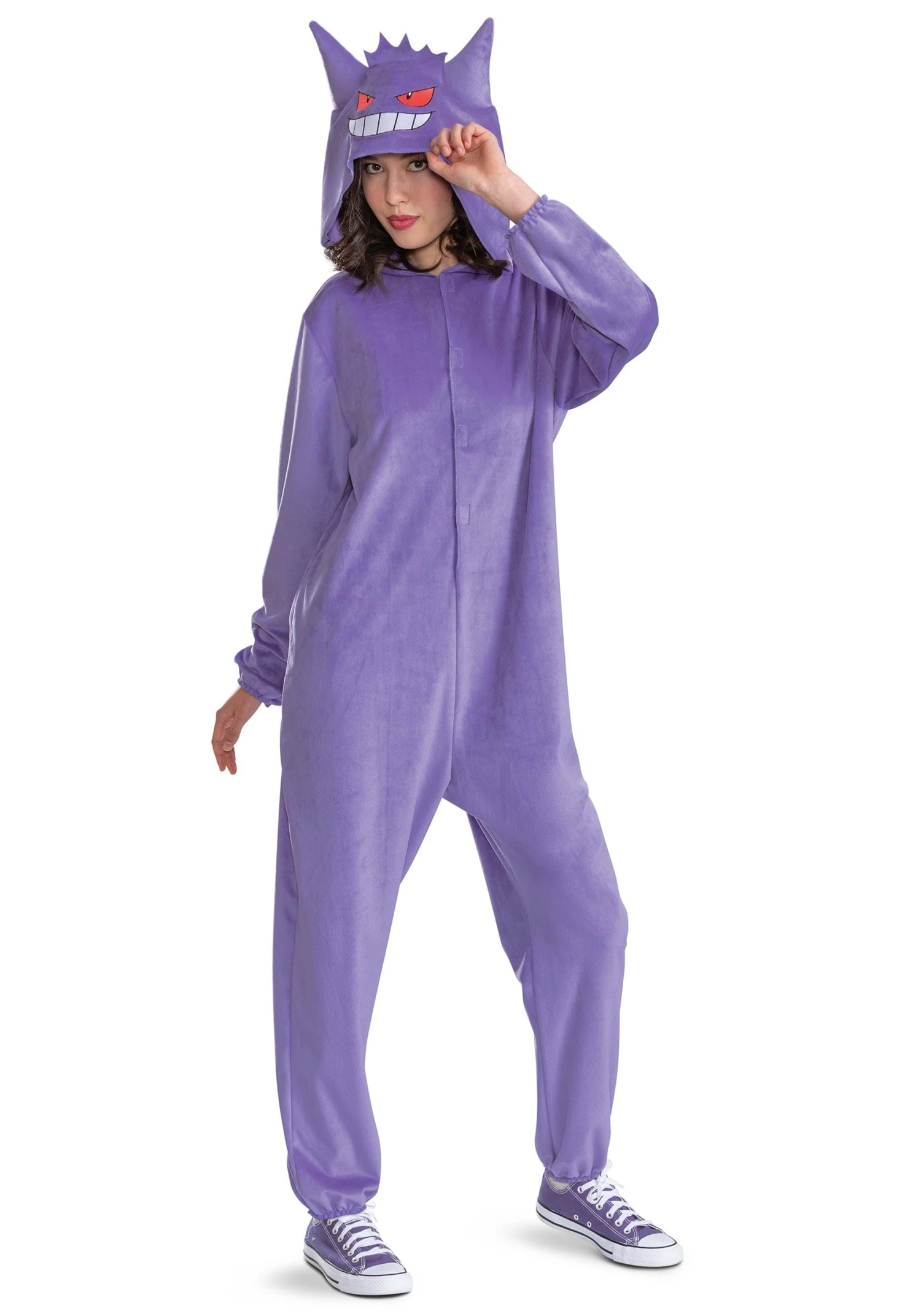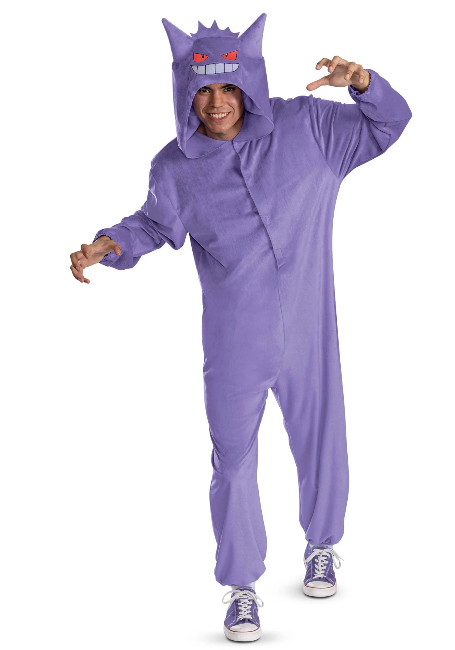 This is an Adult Deluxe Pokémon Gengar Hooded Jumpsuit Costume.