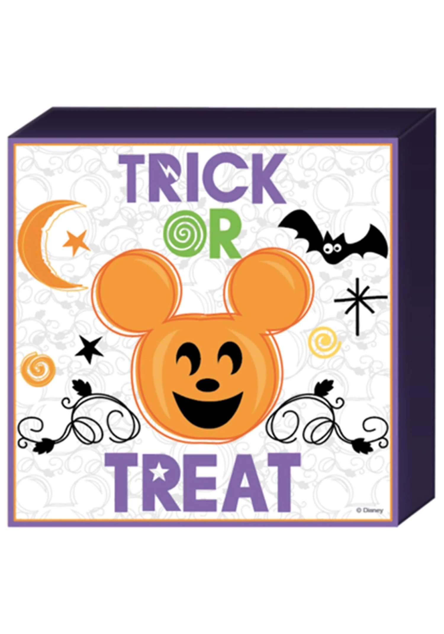 This is a Disney Halloween Mickey Pumpkin Trick or Treat Wood Box Sign.