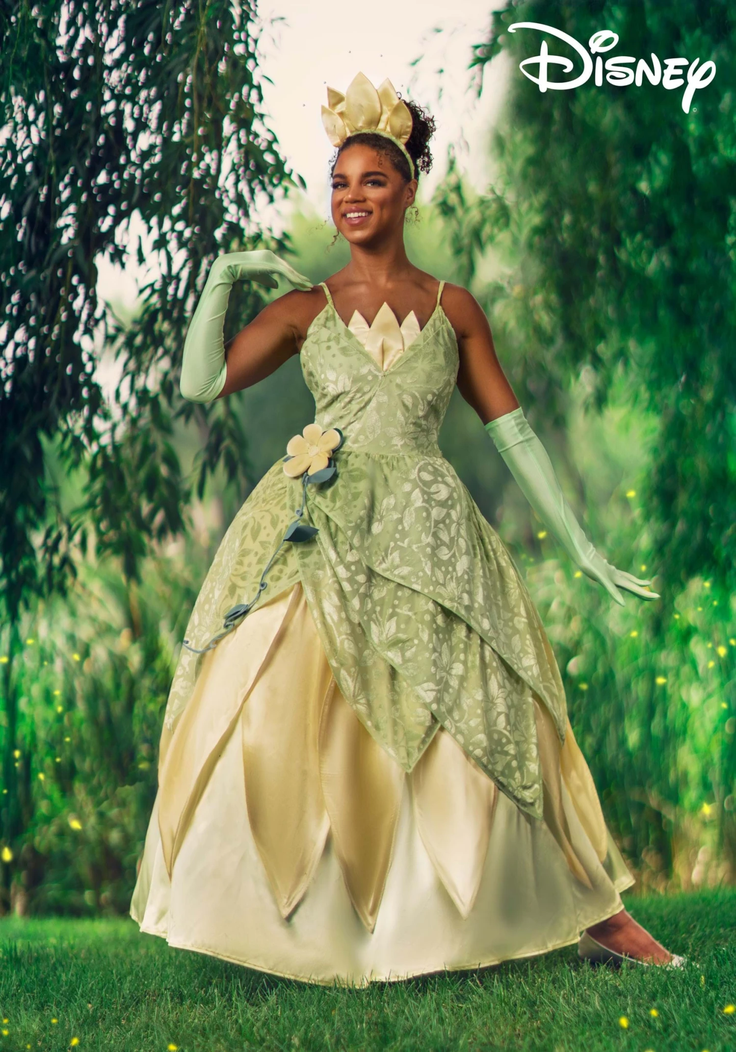 This time, we did all the hard work so you could live your dreams! This Deluxe Tiana Costume from Disney’s The Princess and the Frog was designed and Made By Us to help you look just like this determined character the animated adventure. This beautiful costume comes with a gown, gloves, and a matching crown.