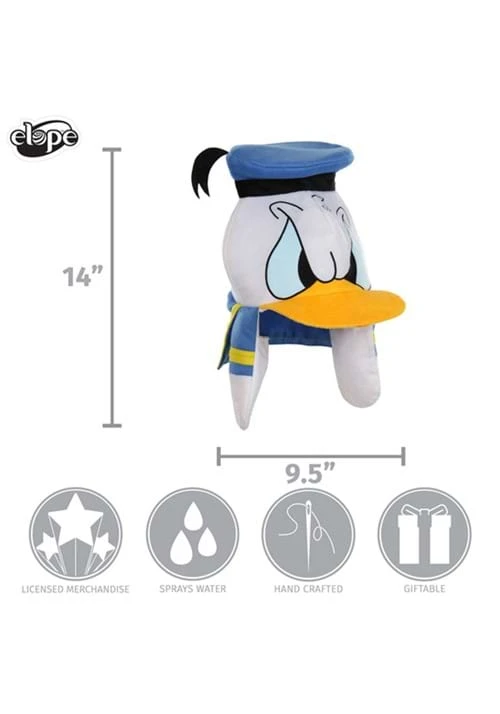 - Donald’s right arm has pocket for water bulb; tubing runs from bulb to character mouth