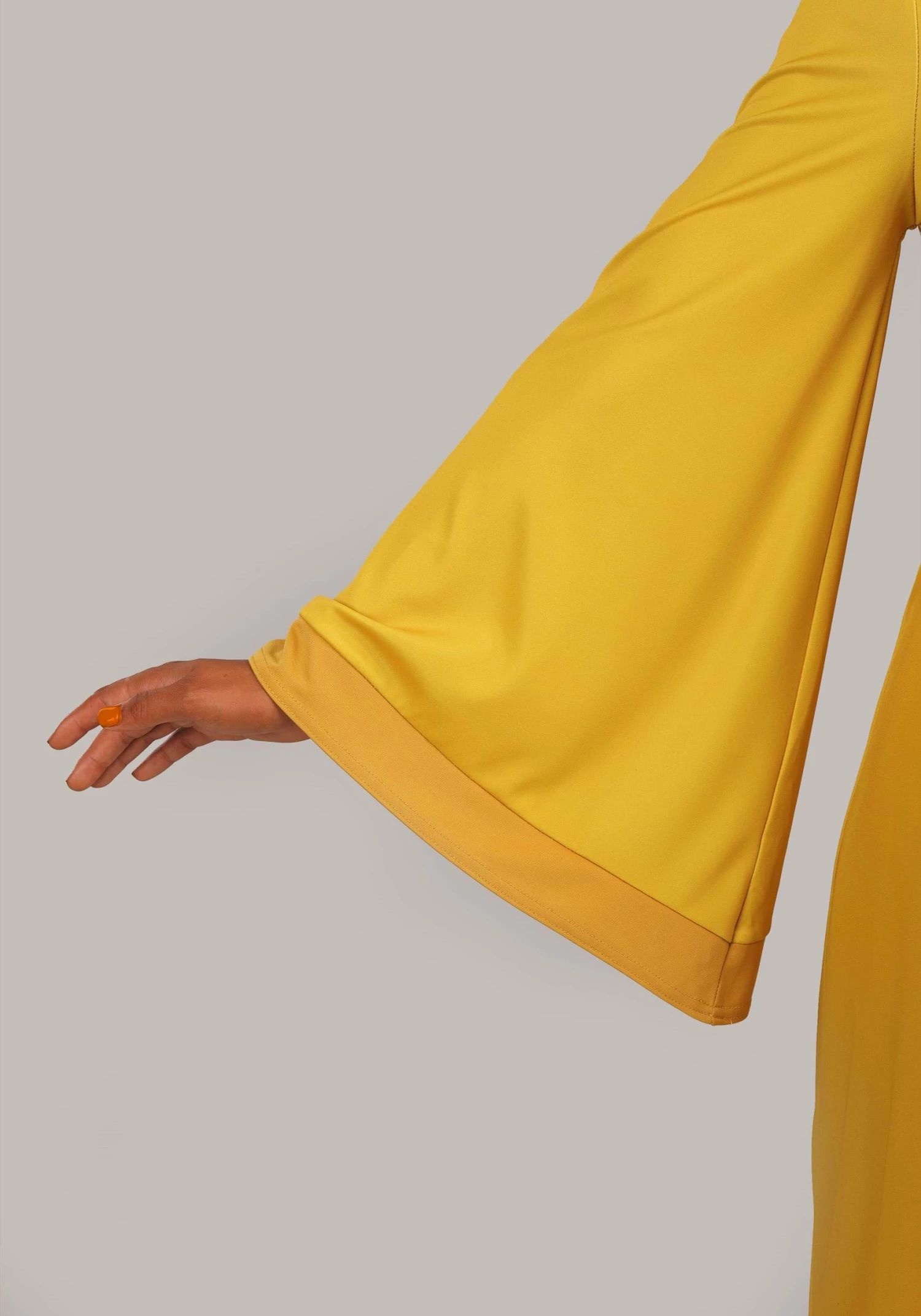 - Jersey knit dress has zipper down center back, flared sleeves, maternity look