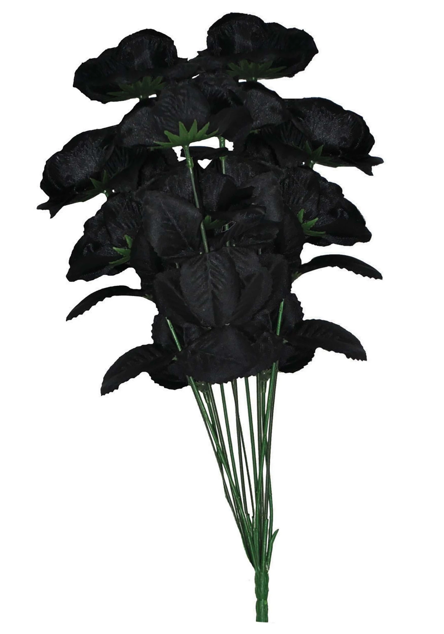 This rose bouquet features 12 exquisitely crafted black roses made of durable plastic, ensuring they remain forever in bloom. Each rose in the bouquet measures approximately 17 inches in length, creating an impressive and eye-catching display. The Dozen Black Roses Bouquet is an essential accessory for those who dare to delve into the darker side of elegance. Add this bouquet to your collection and let your gothic spirit blossom.