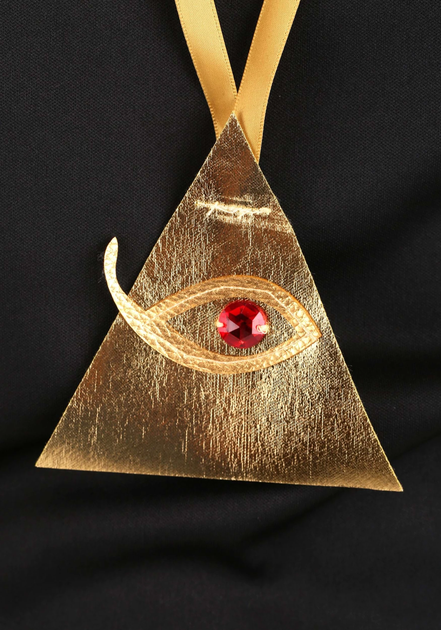 - Triangular faux leather medallion on ribbon necklace, set with faux gem