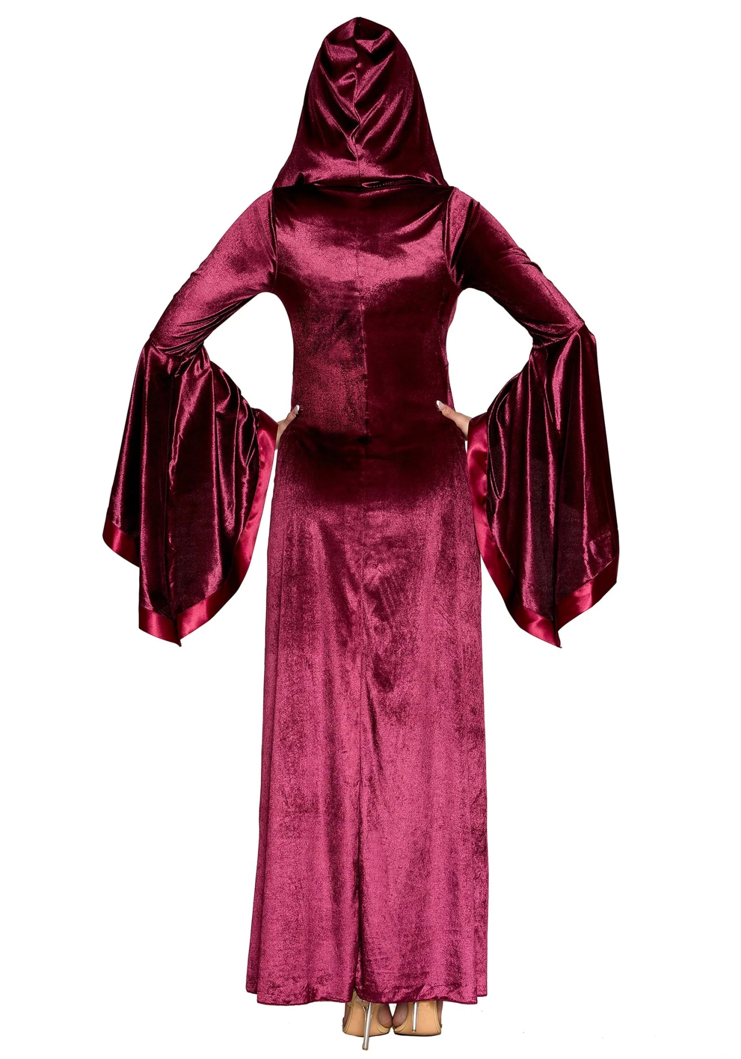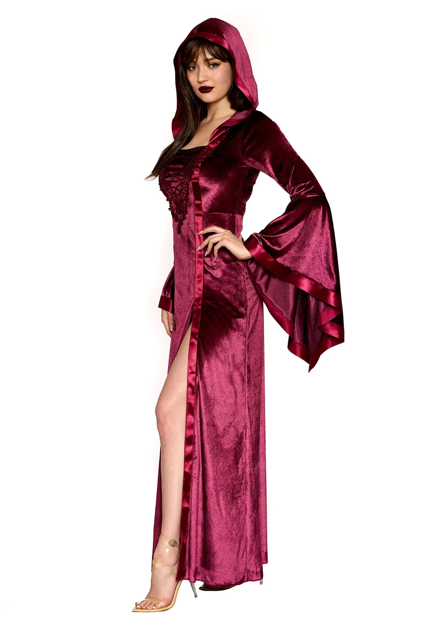This is a Women’s Velvet Hooded Renaissance Maiden Costume.
