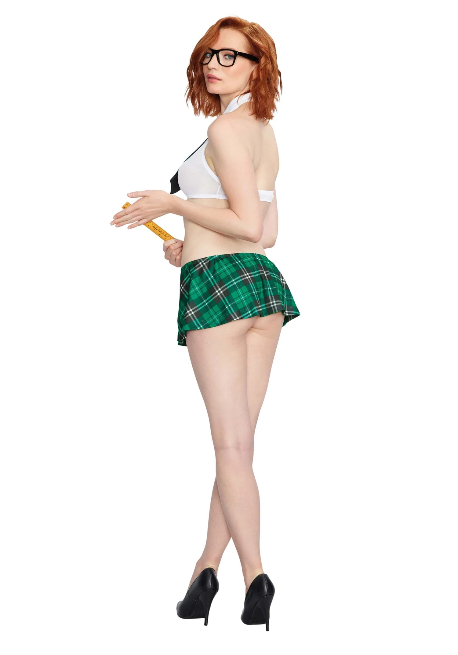 This is a Women’s Sexy Mesh Schoolgirl Green Costume.