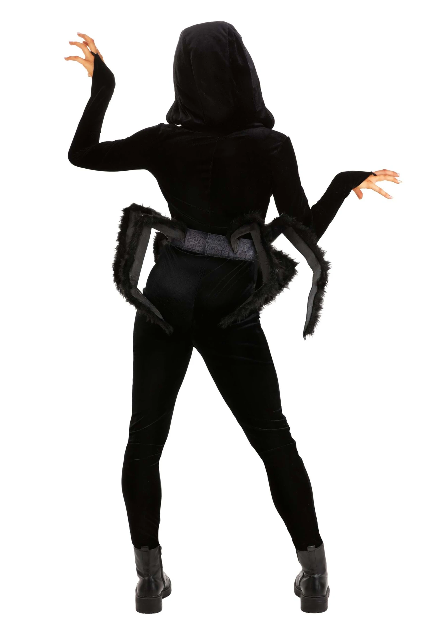 The belt is where the real magic happens. Made from sublimated jersey knit with faux suede spider legs, it’s got plush trim and posable wire in the legs, so you can arrange them however you like—whether you’re going for spooky or stylish. It fastens easily with a hook and loop closure at the back, so you can focus on being fabulous without any costume malfunctions.