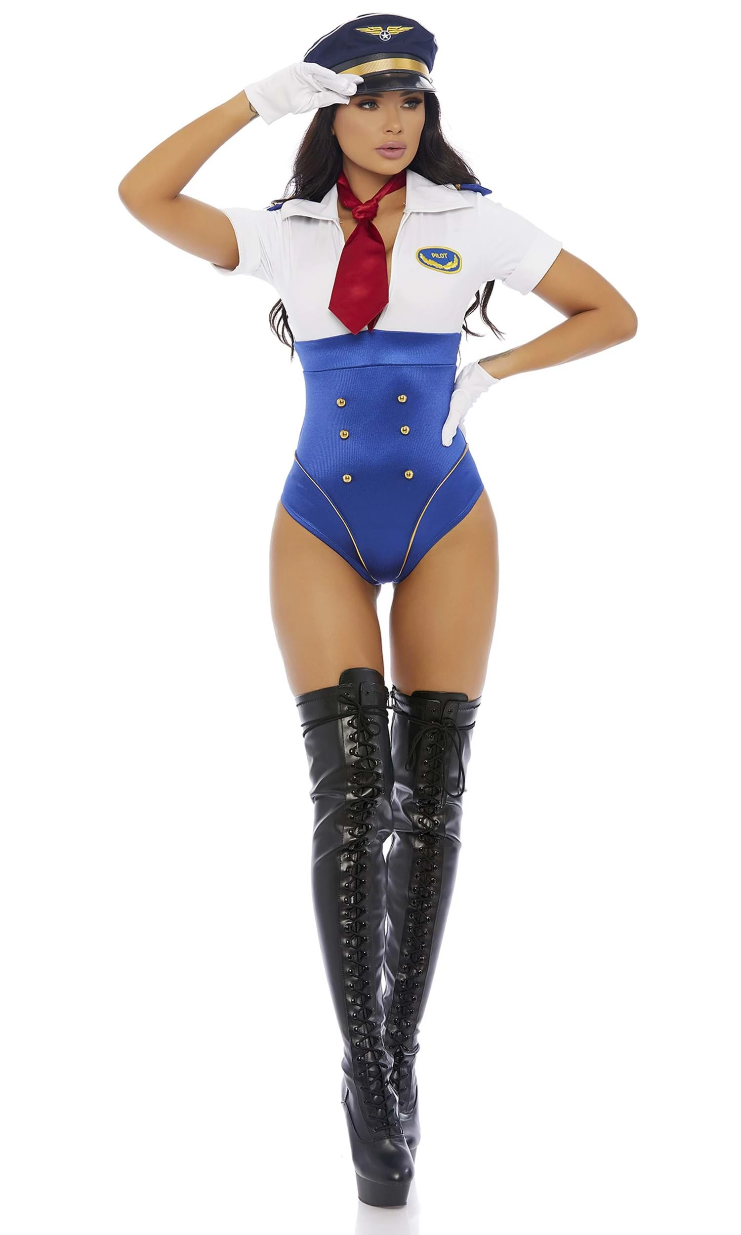 - Stretchy spandex bodysuit has decorative values, pilot patch
