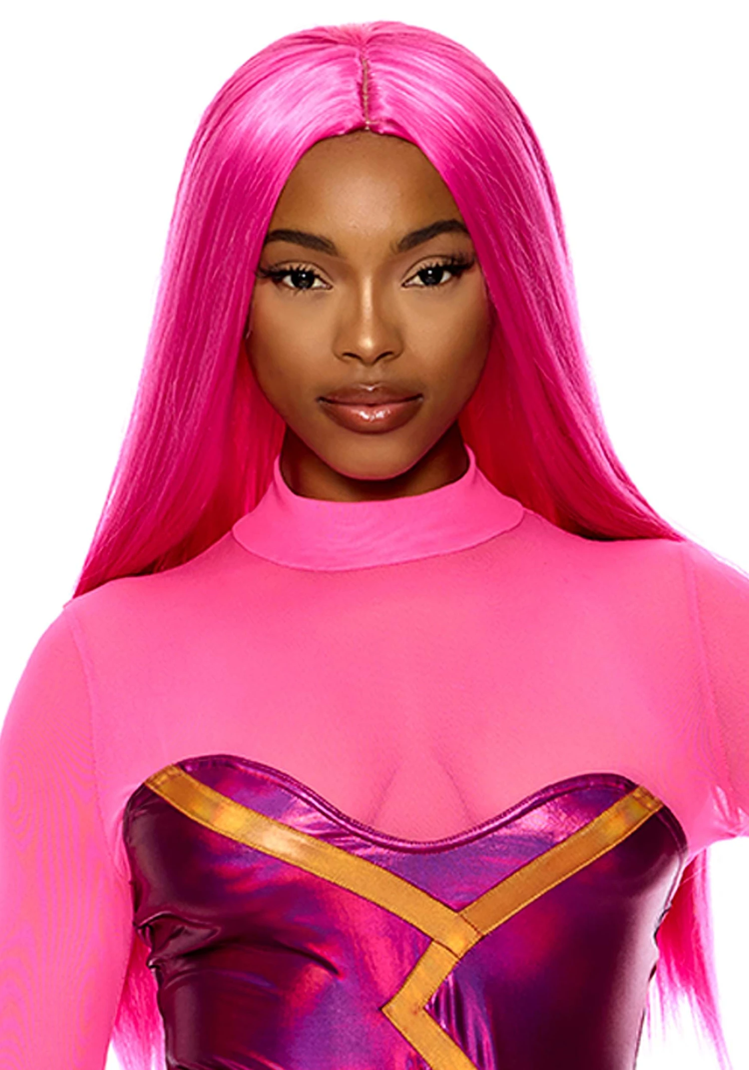 This is a Women’s Long Hot Pink Lava Costume Wig.