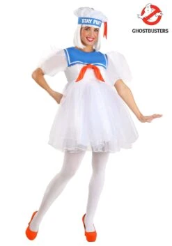Looking for a unique way to add a “villain” to your Ghostbusters group costume? This Made By Us Stay Puft Costume Dress is the answer! Inspired by Stay Puft’s iconic shape and coloring, the costume features a playful babydoll dress, classic sailor accessories, and the Stay Puft logo. Complete a standout Ghostbusters concept or make a grand solo entrance when you choose the officially licensed costume for your next event!