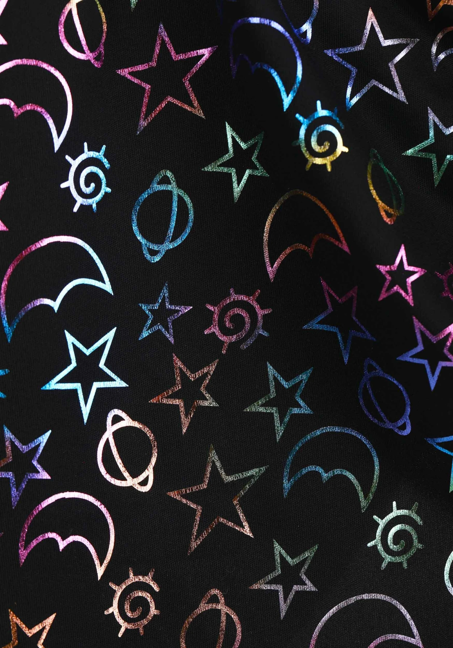 - Cloak fabric mas metallic printed stars, moons, and planets