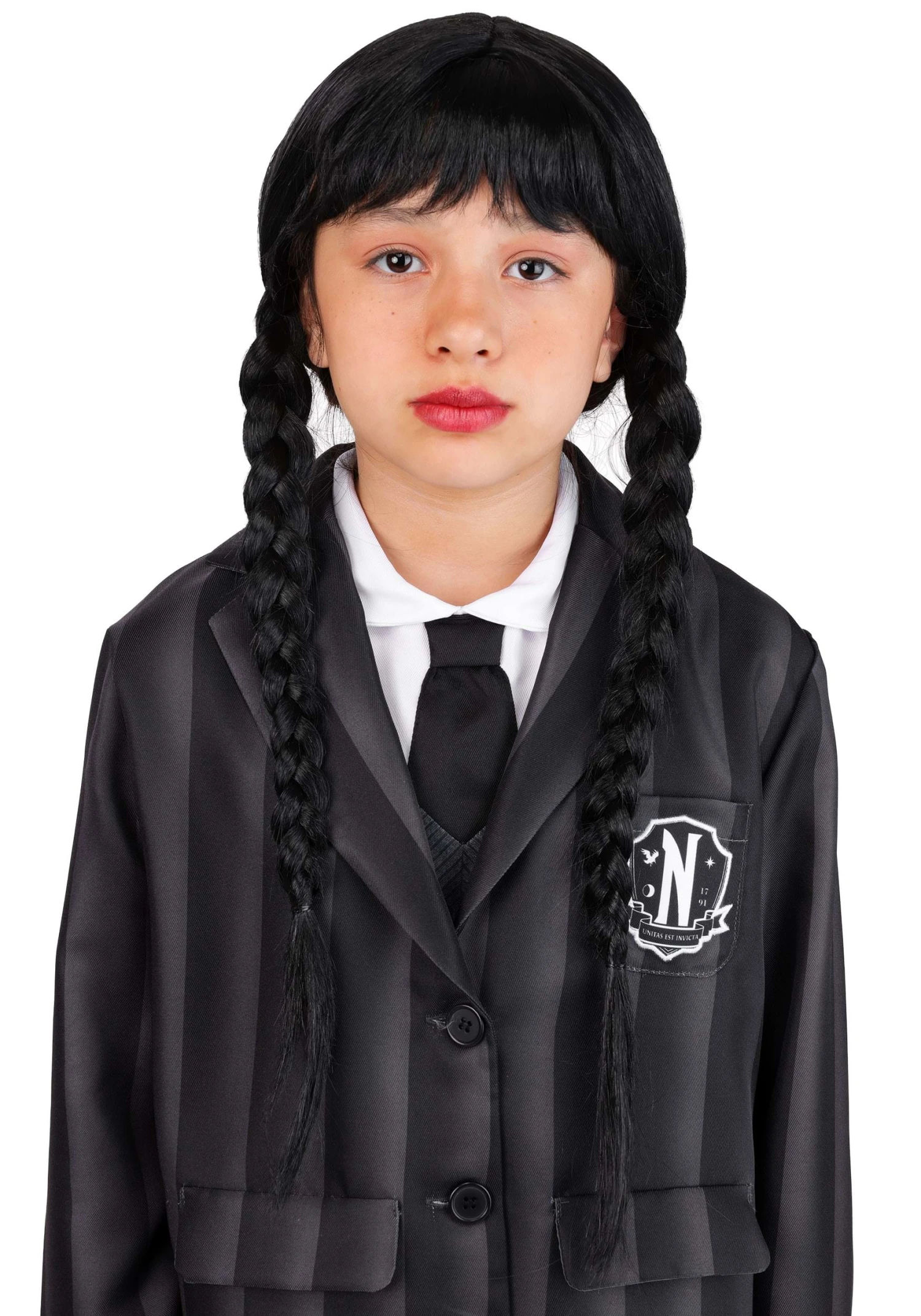 Step into the delightfully dark world of everyone’s favorite deadpan icon with this officially licensed Wednesday Wig for kids. Styled into two sleek, inky-black braids, it’s the perfect finishing touch for any young fan who wants to master that perfectly unimpressed look. Whether it’s for a costume party, school event, or just adding a little gothic flair to everyday play, these braids are as instantly recognizable as Wednesday’s piercing glare.