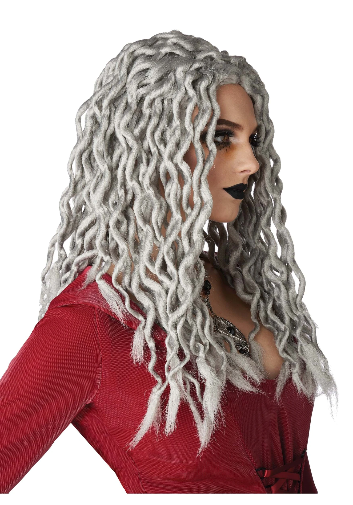 Give your costume a crowning touch this Halloween with this Women’s Gray Crinkle Dreads Costume Wig! The beautiful, silvery faux-hair dreadlocks cascade from a mesh wig cap all the way to the middle of your back. No need for time-consuming hairdressing: The wig is artfully styled so you can say with complete honesty, “Oh, I woke up like this!”