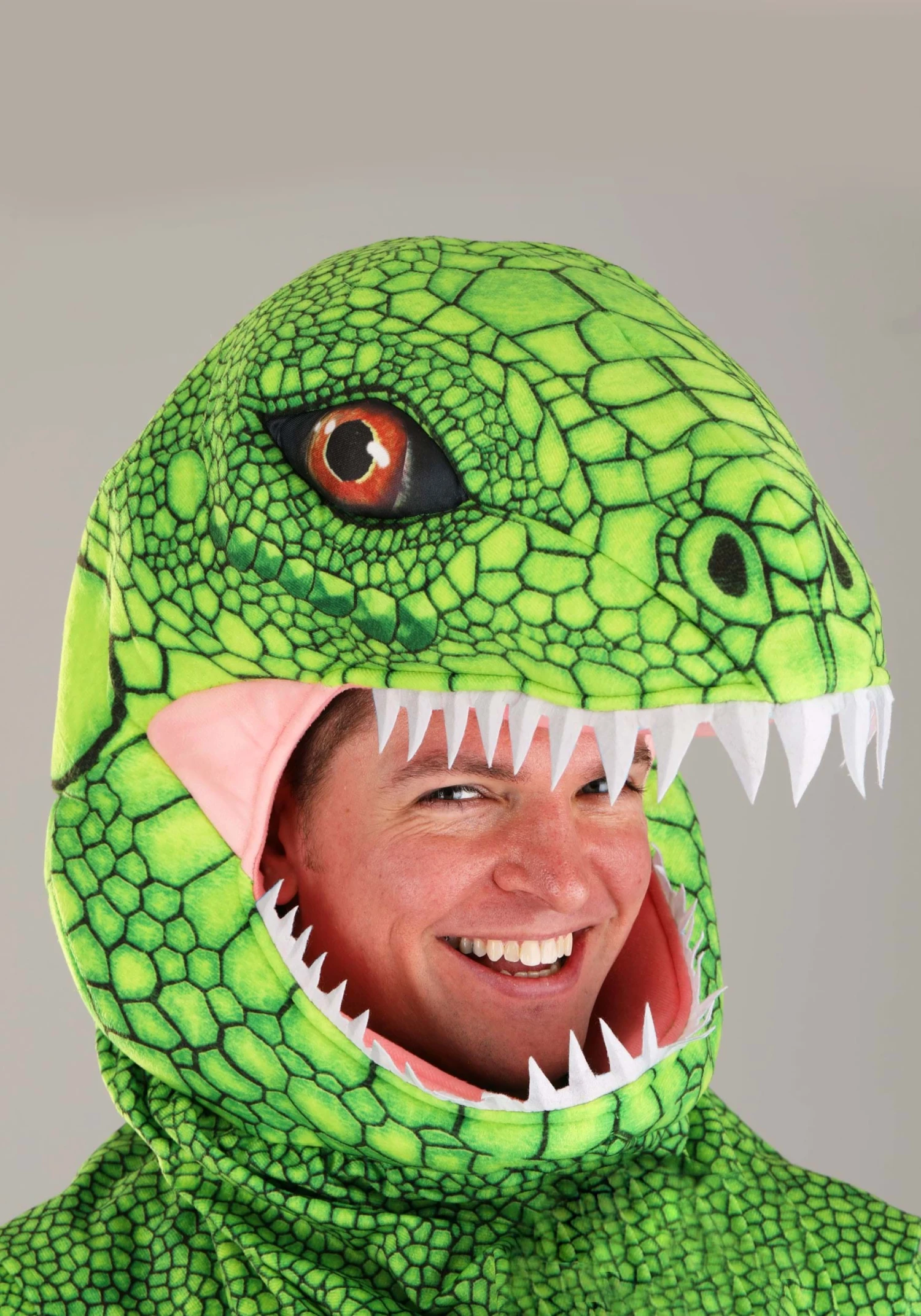 - Headpiece has stuffed iguana head with inner hood for positioning