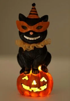 9-Inch Vintage Black Cat Light Up Jack O’ Lantern Halloween Decoration