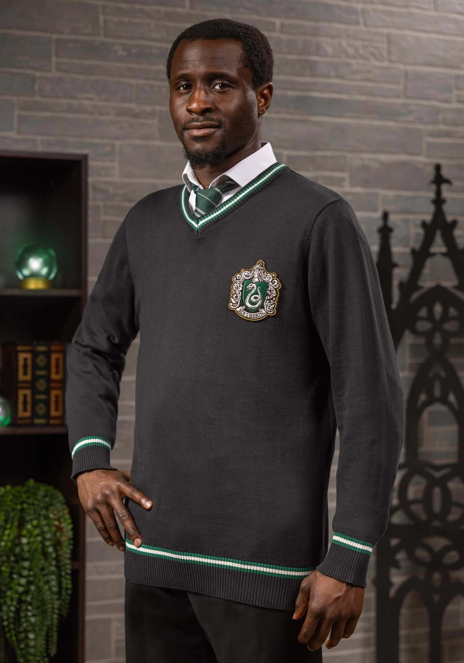 This is an exclusive Harry Potter Slytherin Uniform Sweater for Adults.
