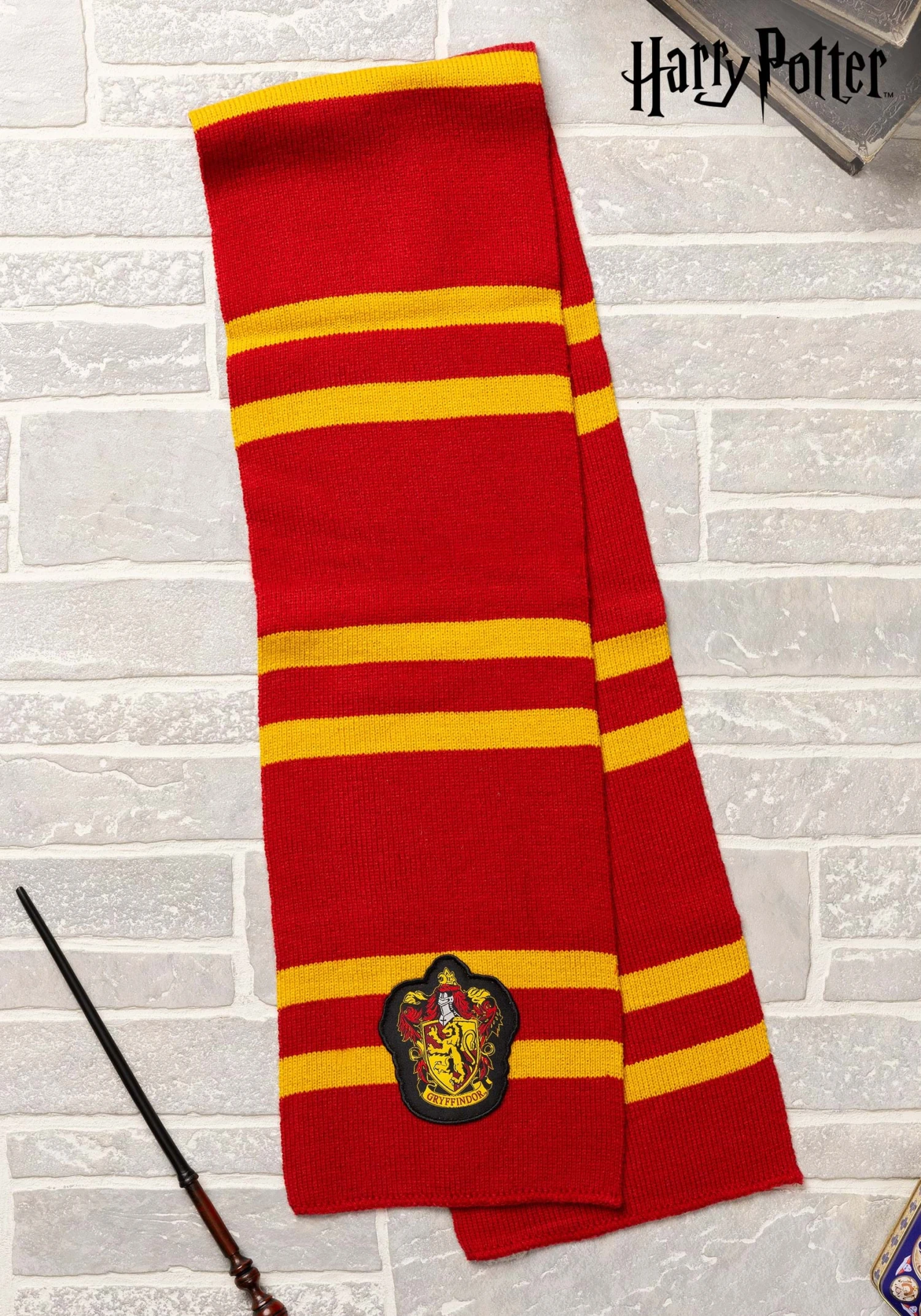 This striped red and gold scarf is ready to help you become a bold Gryffindor student! The soft knit is the perfect accessory to top off any ensemble whether you’re wearing your robes or your muggle street clothes. A Gryffindor badge is sewn onto one side to flaunt your house. High-quality and comfortable, this Harry Potter scarf is sure to be your favorite accessory for years to come!