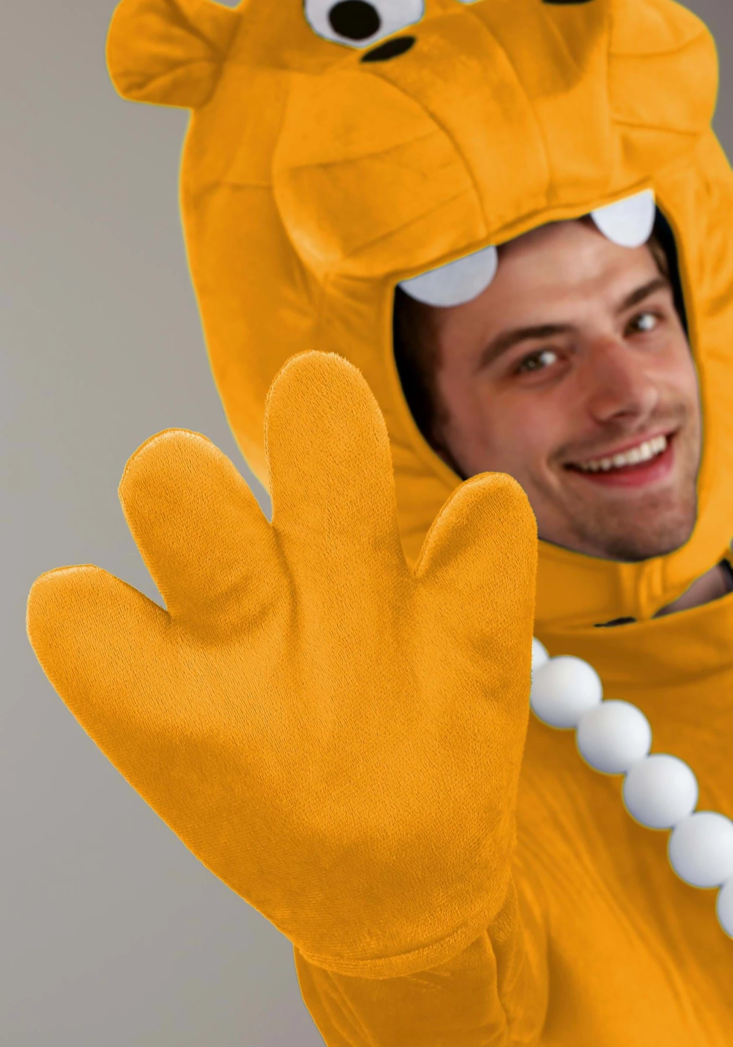 This exclusive fully licensed Hungry, Hungry Hippos costume from Hasbro is sure to catch any costume party crowd by surprise. A Made by Us costume, it was designed by our in-house creative team for comfort and durability. The included jumpsuit zips up the back, making it easy to slip on. The oversized fit makes it possible to wear over your clothes, making it a great choice for chilly outdoor events! Mitts cover your hands while the shoe-covers can strap over whatever shoes are most comfortable. The open-mouthed mask allows your own face to freely peer out so that you can easily interact with the people around you! To top it all off, our design team added a necklace to represent the delicious marbles from the game, although they don’t recommend feasting on these beads!