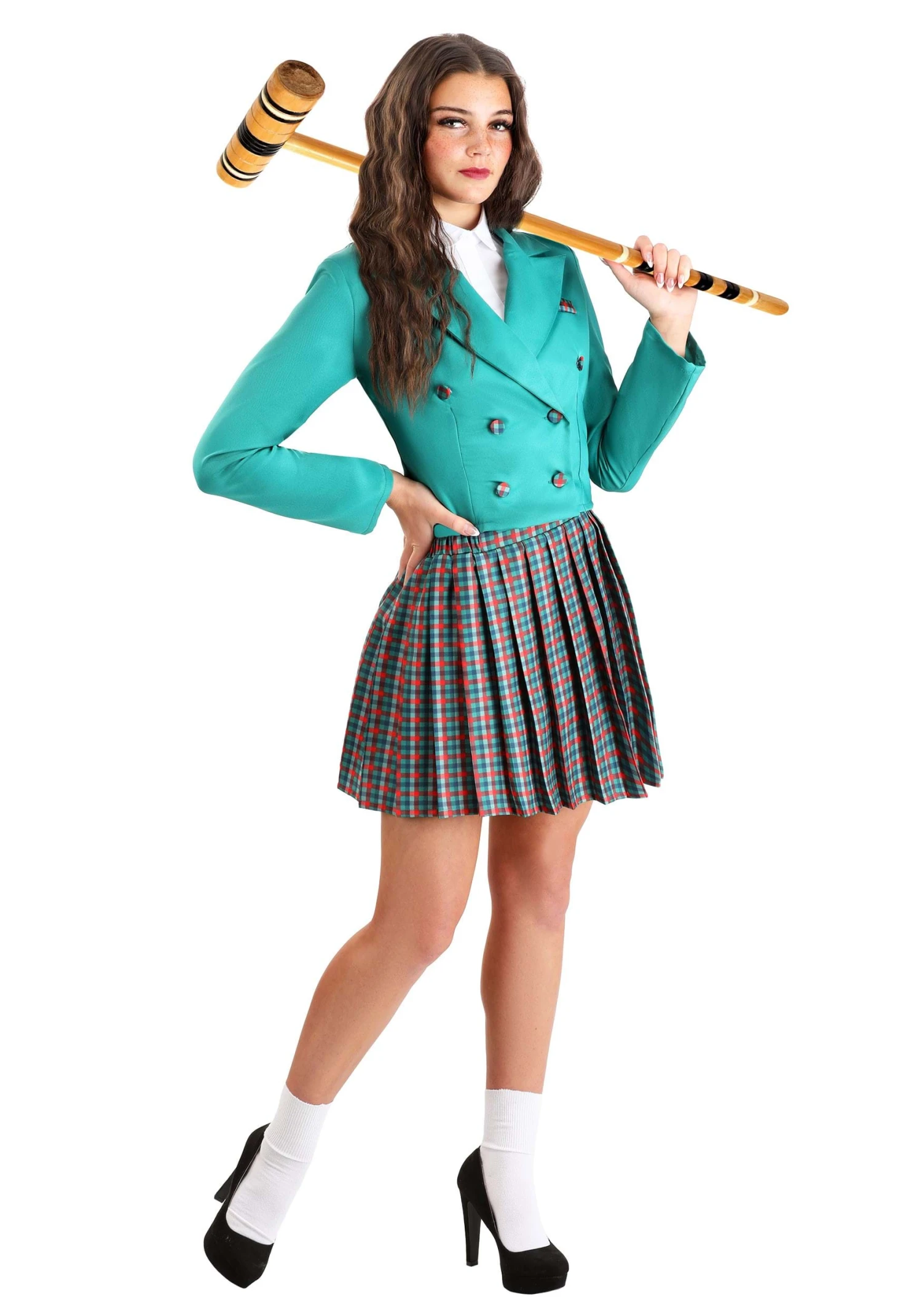 The pleated plaid skirt ties it all together in classic country club fashion—perfect for stomping across a lawn or into a showdown. Pair it with white socks, black heels, and the ability to side-eye someone into submission. (Croquet mallet not included, but highly encouraged.)
