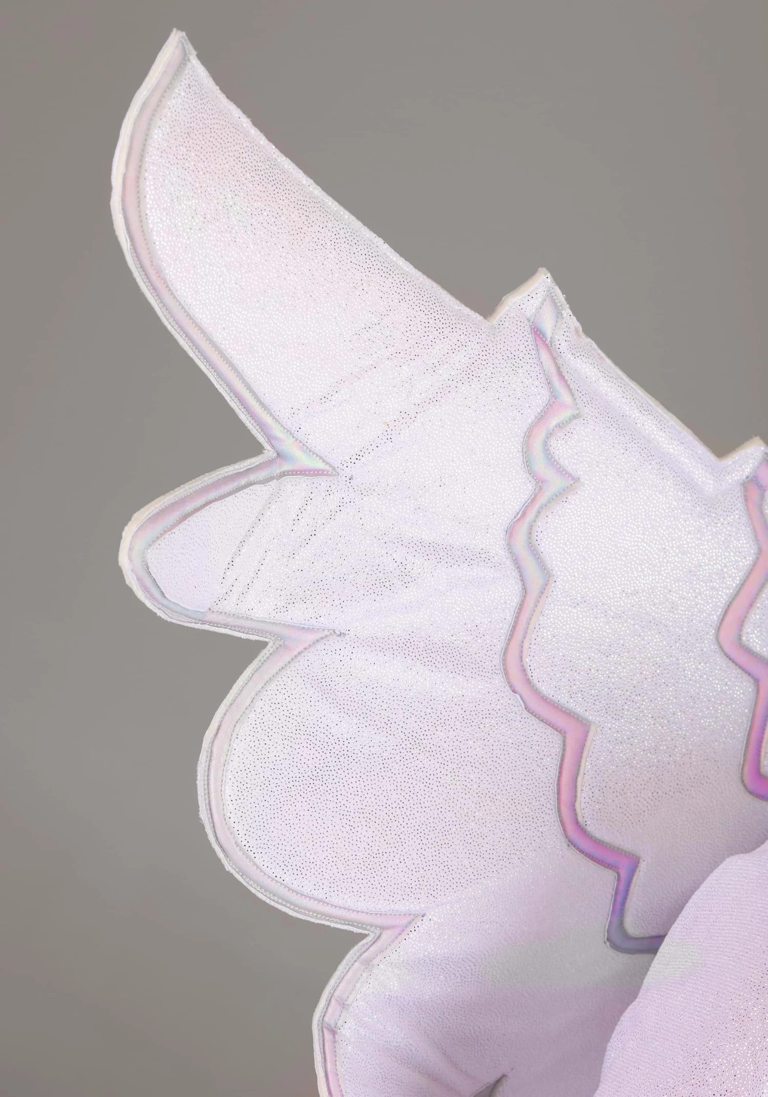 - Foam-backed velour wings attach to back of jumpsuit with hook and loop fastener