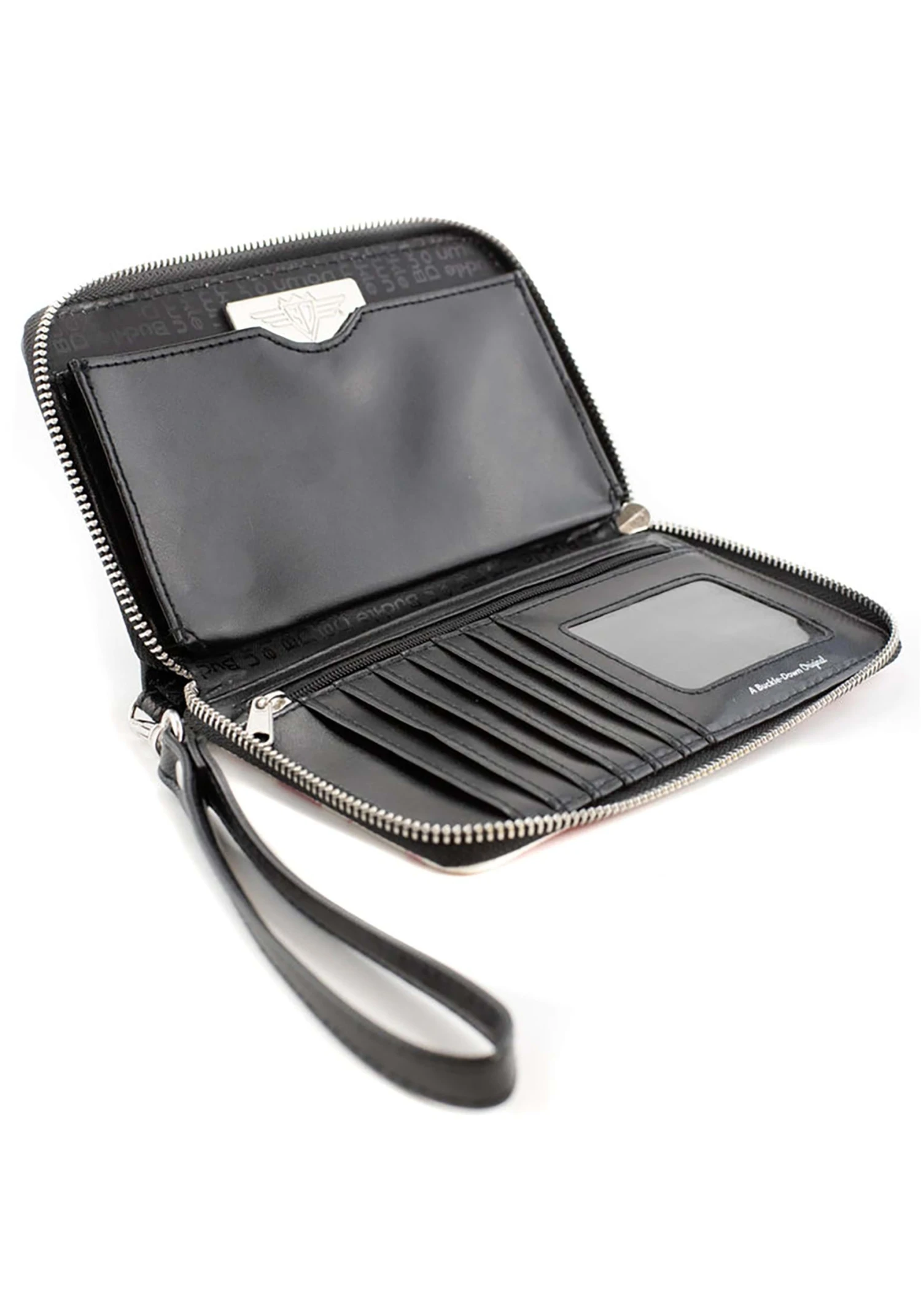 - 1 billfold, 6 card slots, 1 coin zipper, 1 windowed ID holder slot