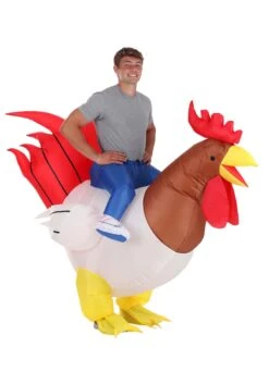 This is an exclusive Adult Inflatable Ride-On Rooster Costume.