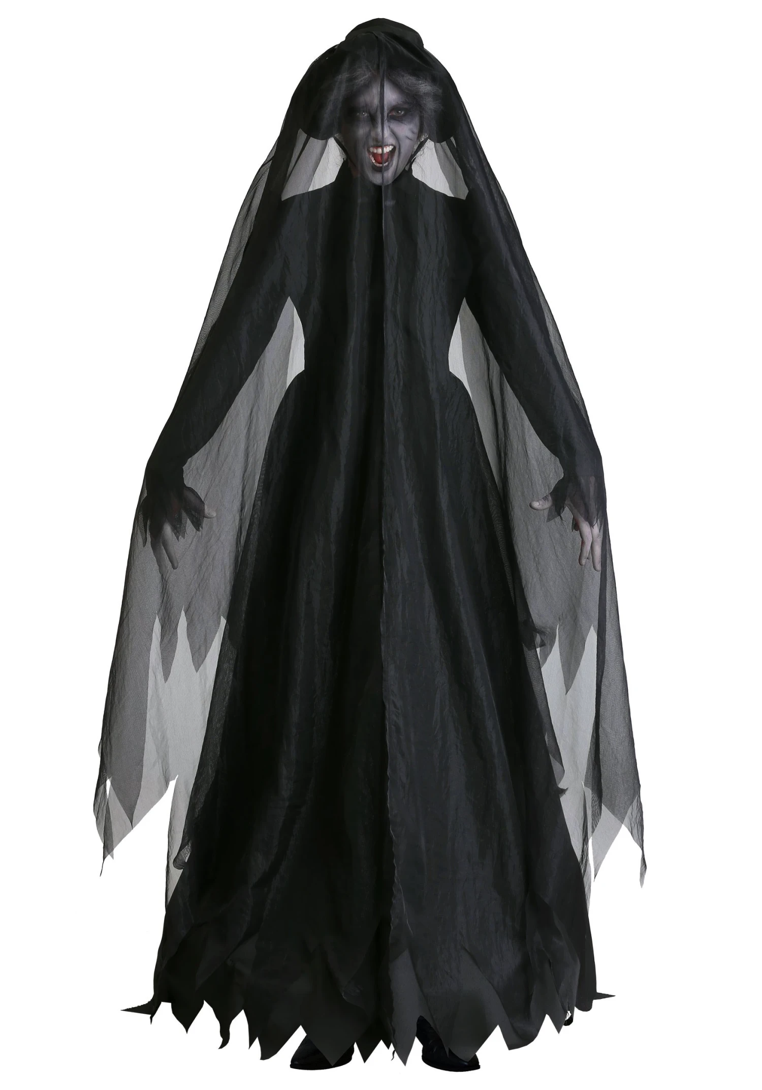 Plus Size Lady in Black Ghost Costume