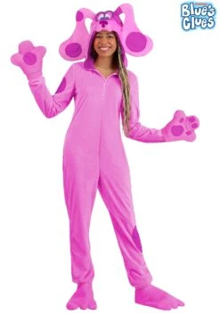 This costume is a bright and playful option for anyone who grew up watching Blue and Magenta leave paw prints on everything in sight. It’s a standout choice for group costumes, throwback parties, or just adding some joy to your next event. Step into this fuzzy pink jumpsuit and get ready to follow the clues—Magenta style.