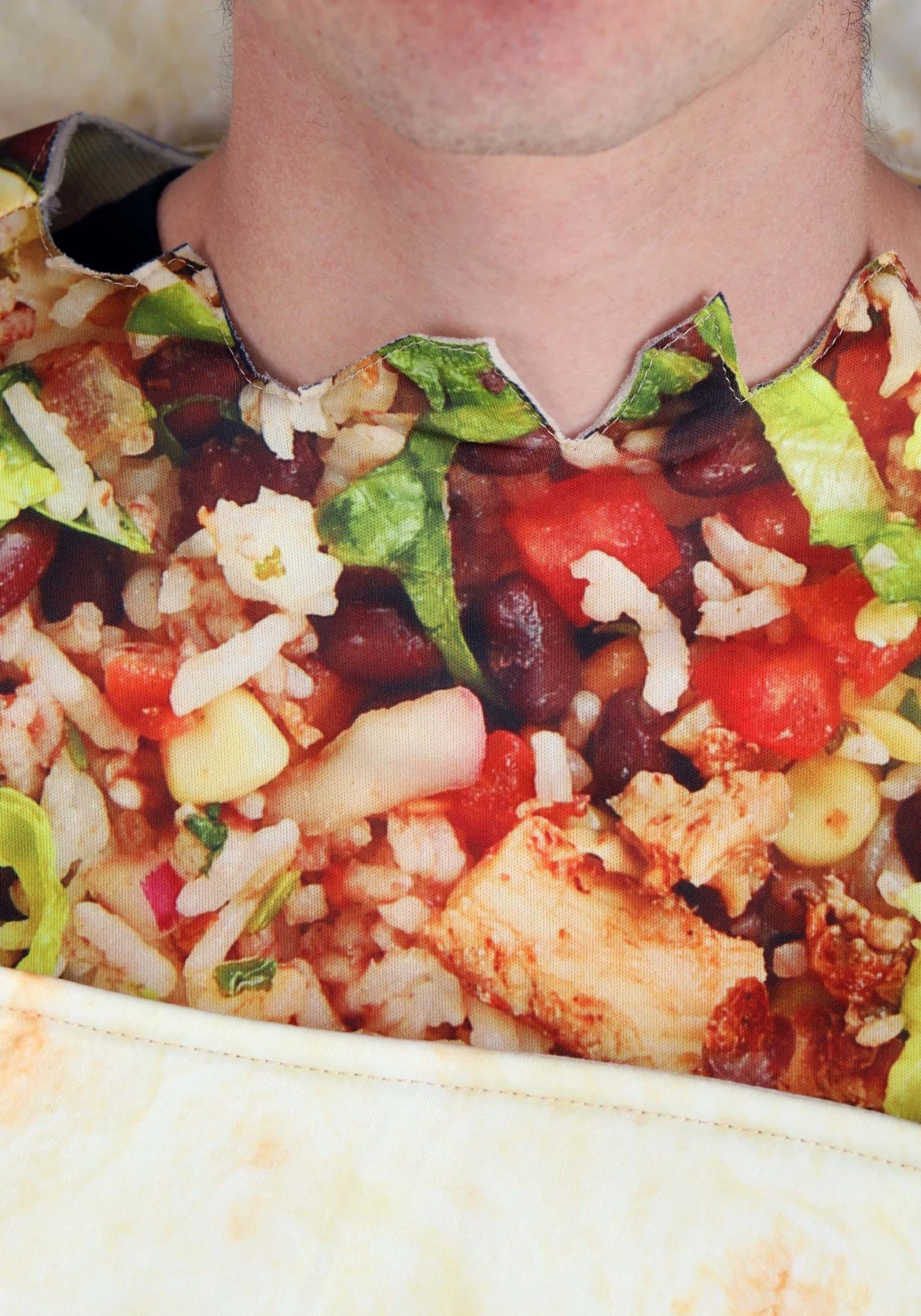 - Graphic print resembles loaded burrito wrapped in aluminum foil