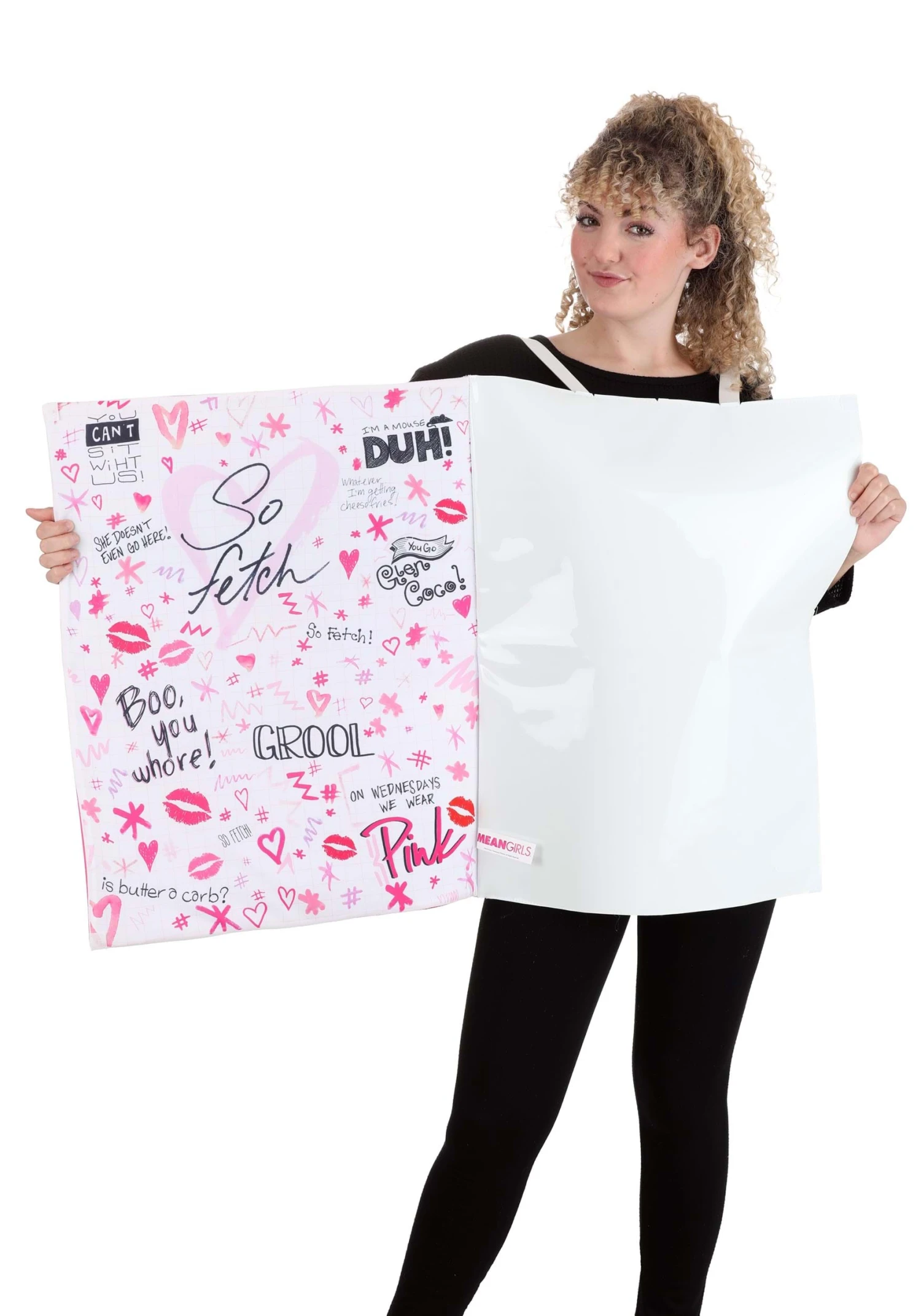 This is an exclusive Adult Mean Girls Burn Book Sandwich Board Costume.