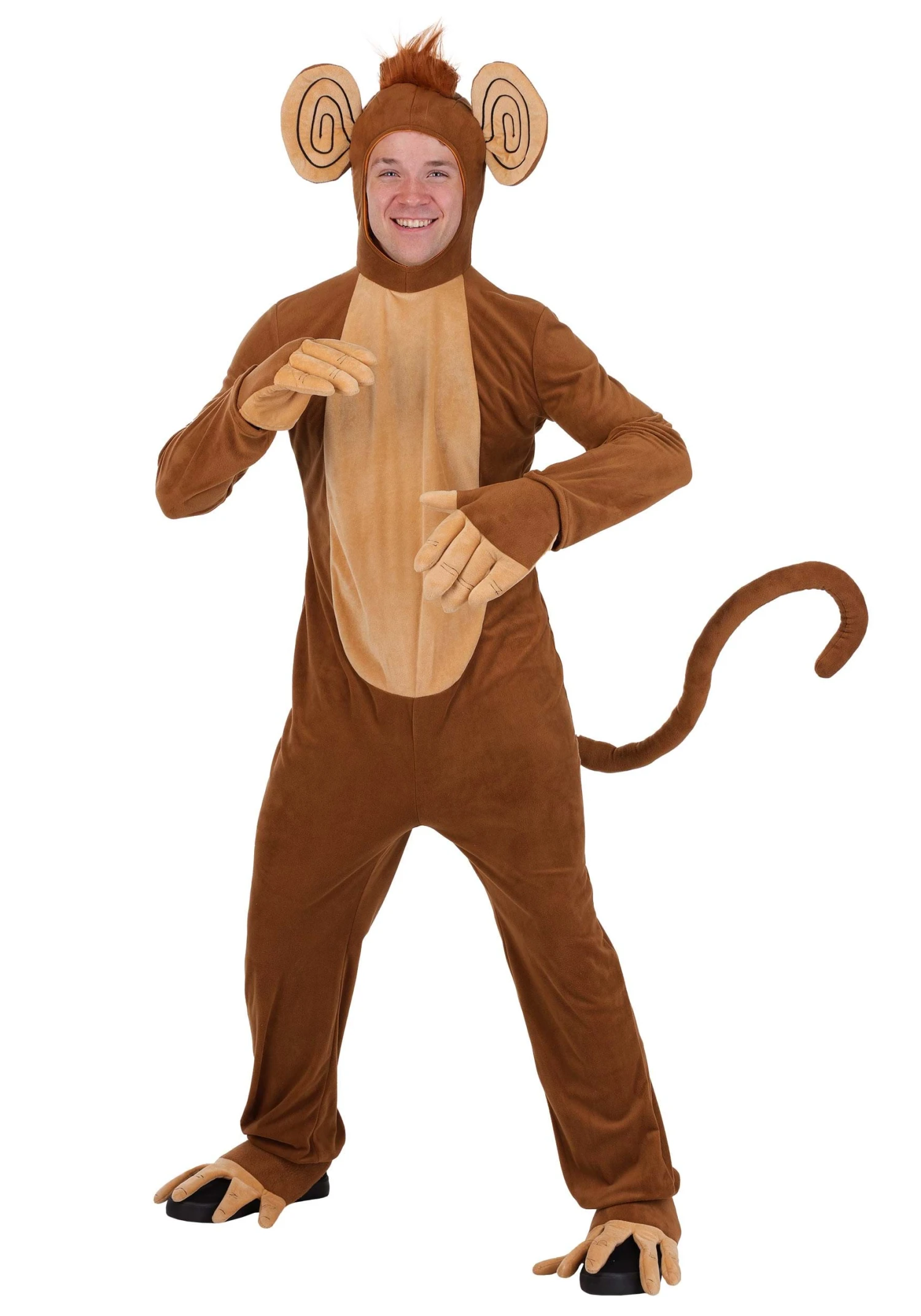 Become a true evolutionary marvel when you double your advantages with this Funky Monkey Costume. Not only have our designers put together every bit of genetics know-how they had to bring you some fun, but they’ve made the whole thing adorable too! This bodysuit is soft and comfy thanks to its minky fabric and has unique hand and foot covers that make it look like you have actual monkey mitts on all your limbs! The hood pulls up to show giant ears and a cute tuft of hair while the bodysuit’s tail finishes off the funny and fun style.
