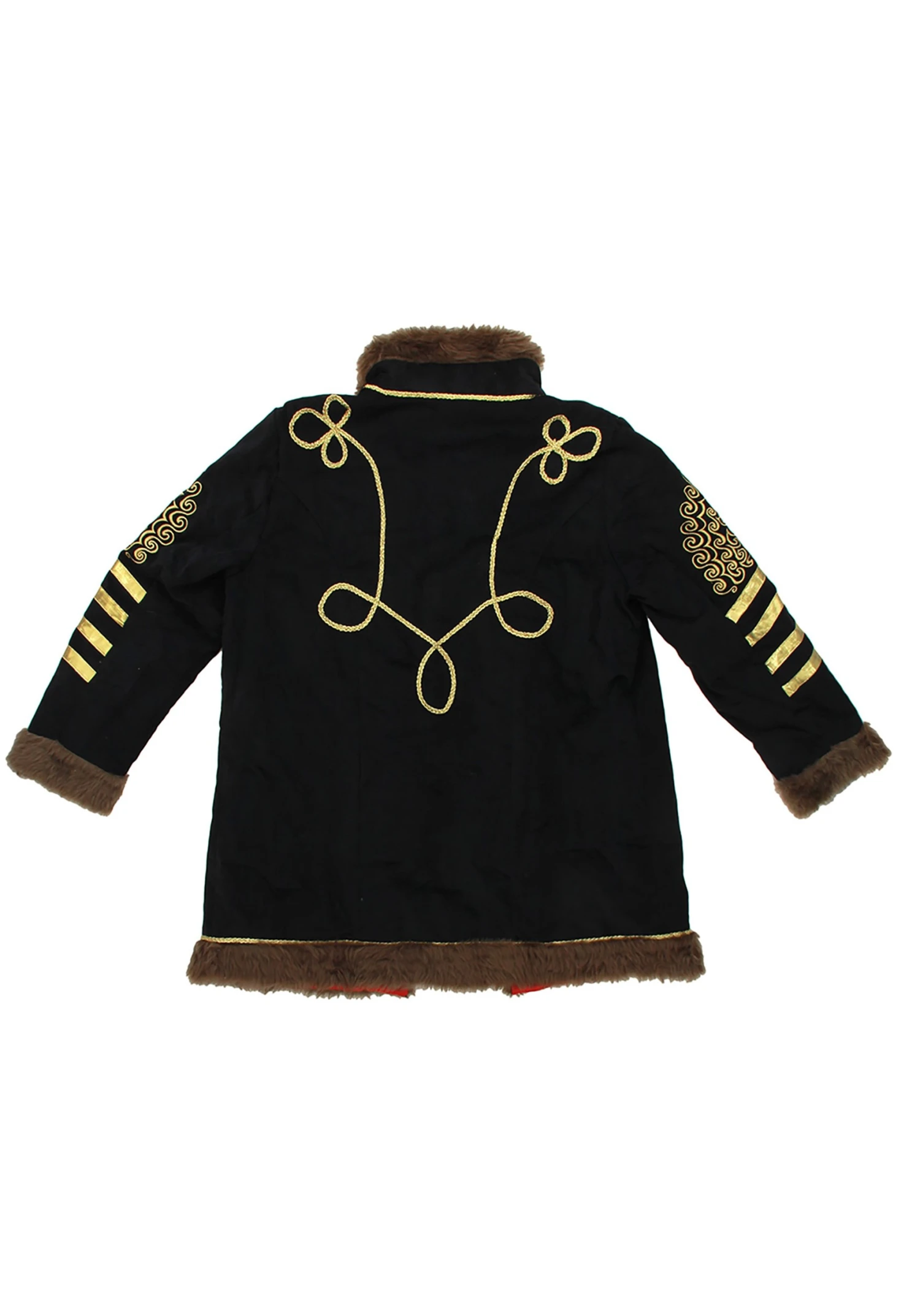 - Frog closures at center front have metallic gold braid loops over gold tone metal values