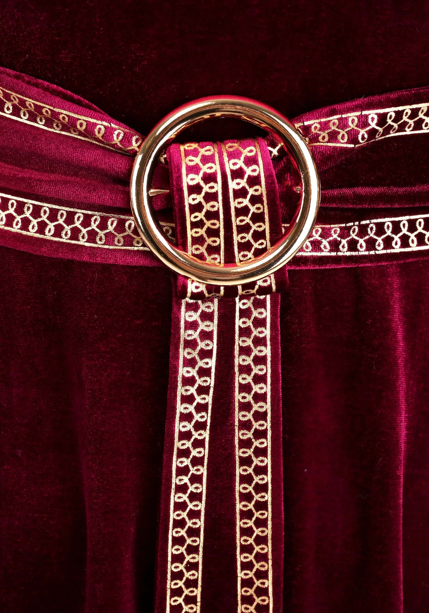 This women’s costume is a plus size version of our Mother Gothel costume from Disney’s Tangled. The costume comes with a dress made out of a vibrant burgundy fabric. The dress also has gold detailing around the bust and along the sleeves to capture the look of Mother Gothel’s dress from the movie. The costume also comes with a belt that fits with a ring-style loop in the center. You’ll be able to get in touch with your inner Disney villain in no time!