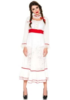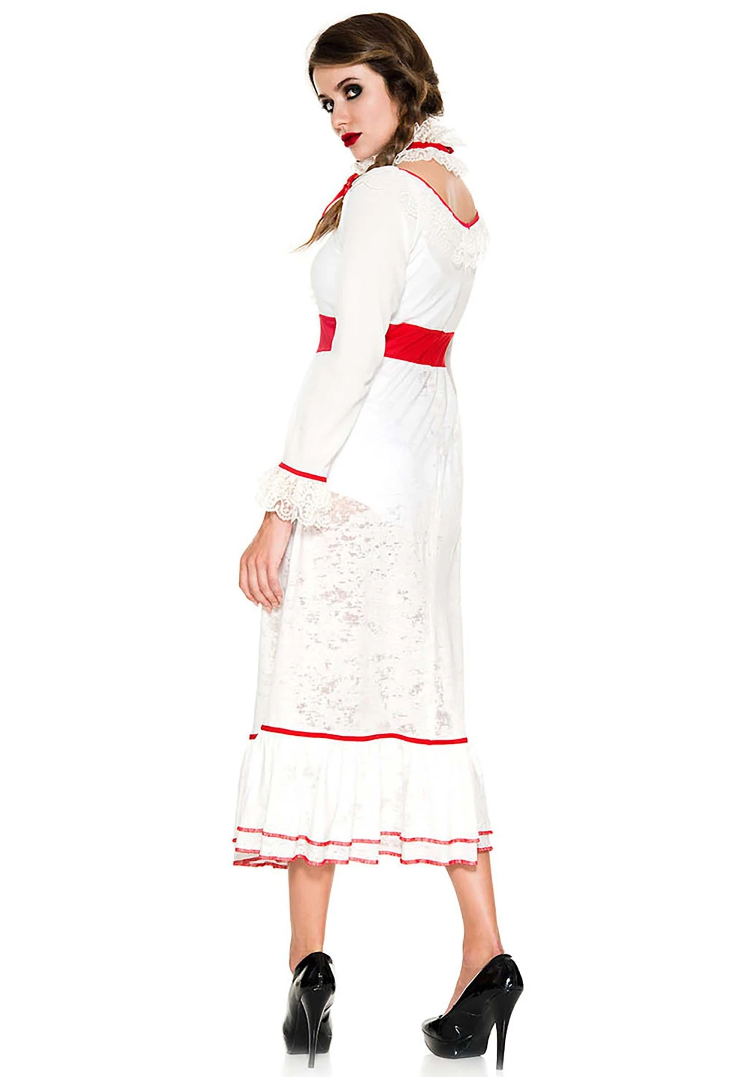 - Tiered hem ruffles are trimmed with red ribbon and stitching