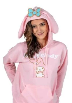 - Pullover sweatshirt has hood with sewn in ears, felt bow