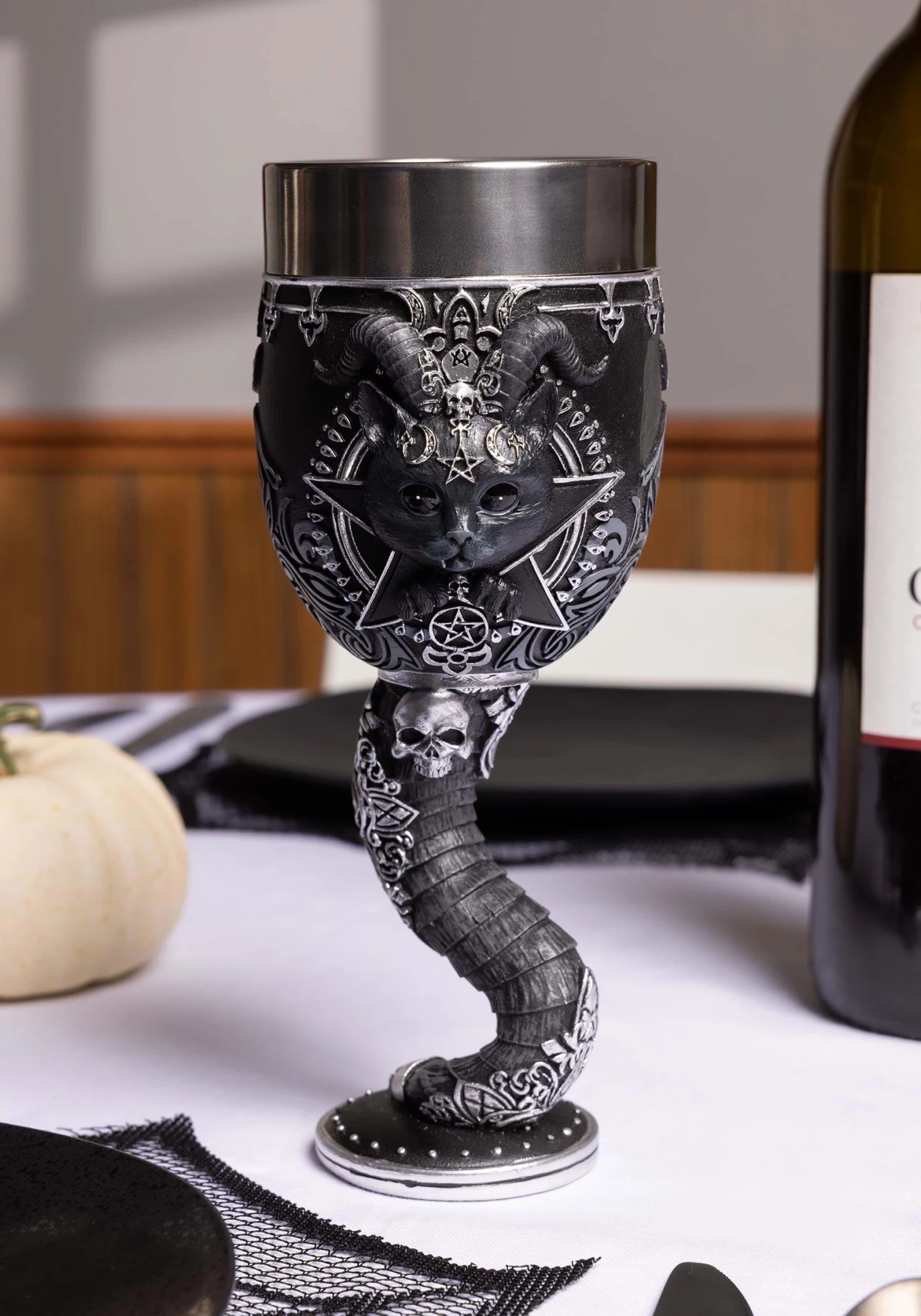 The stem is in the shape of a demonic horn. It is covered in spooky silver details like skulls and pentagrams. You’ll get chills at first glance. Then once you look at the cup itself and notice the adorable kitten face, you’ll let out a little “aww” and fall absolutely in love with this Halloween Goblet!